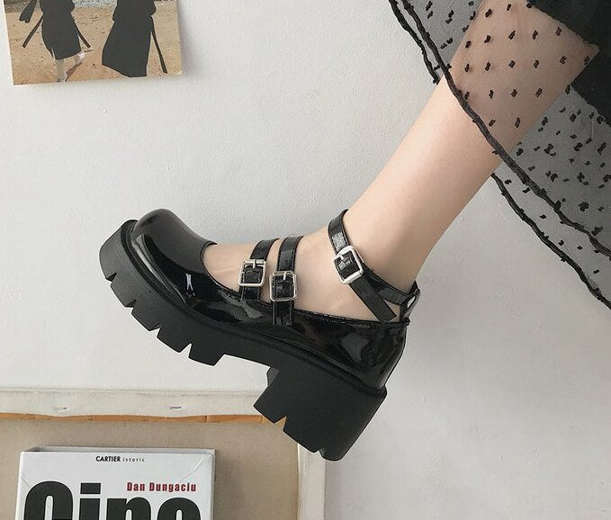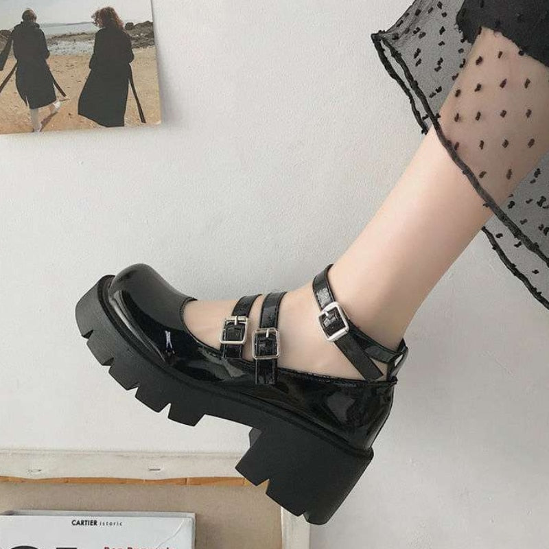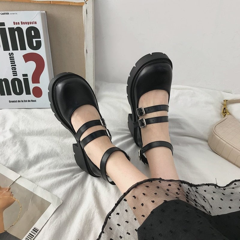 Back To School Women's Shoes Japanese Style Lolita Woman Vintage Soft High Heel Platform Leather College Student Mary Jane Girl Round Toe Black