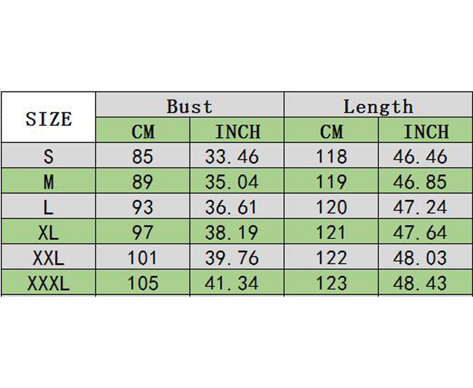 2. This clothing size information is just for reference only and may have 2-3cm differences due to manual measurement.