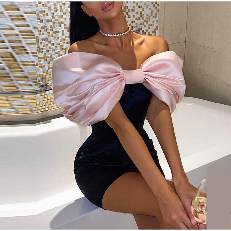 Off Shoulder Big Bowknot Design Skinny Dresses Elegant Women Bodycon Dress For Club Cocktail Party