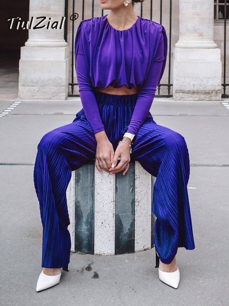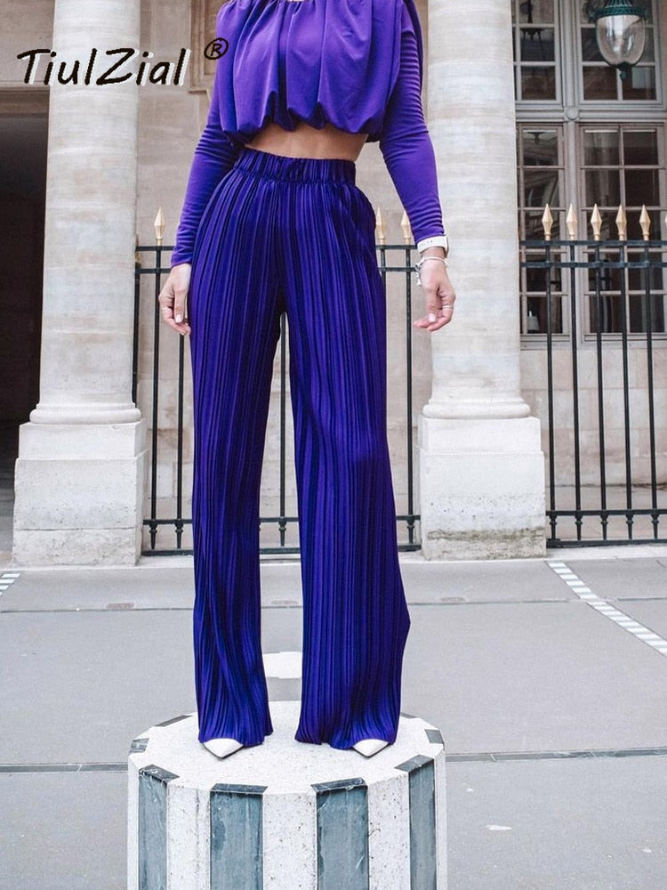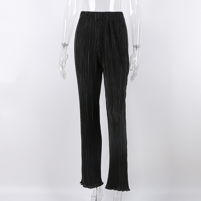 Pleated Y2K High Waist Straight Pants Women 2022 Plisse Casual Long Trousers Capris Pant Bottom Black Loose