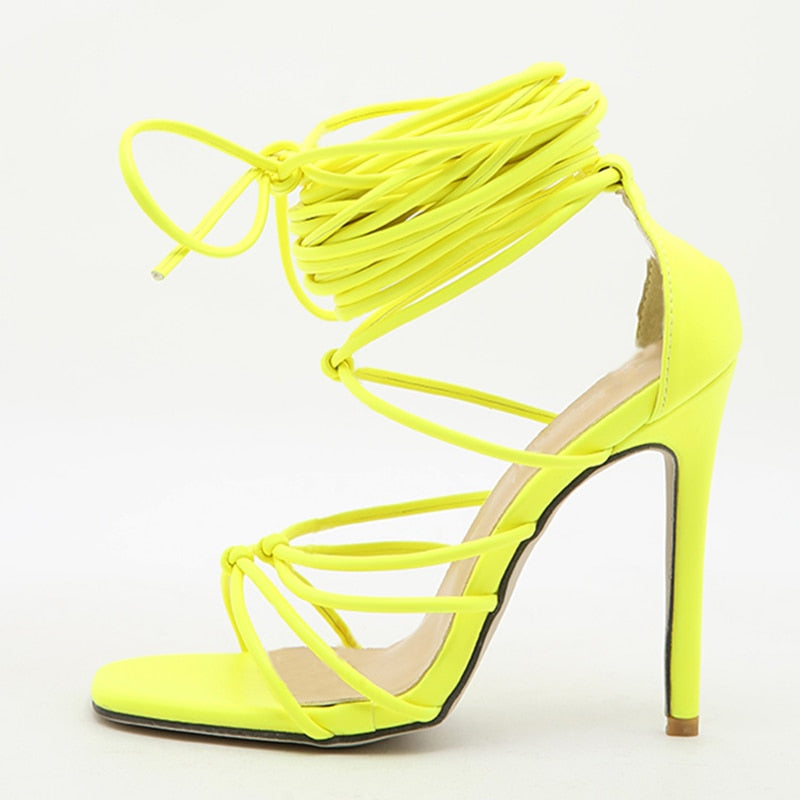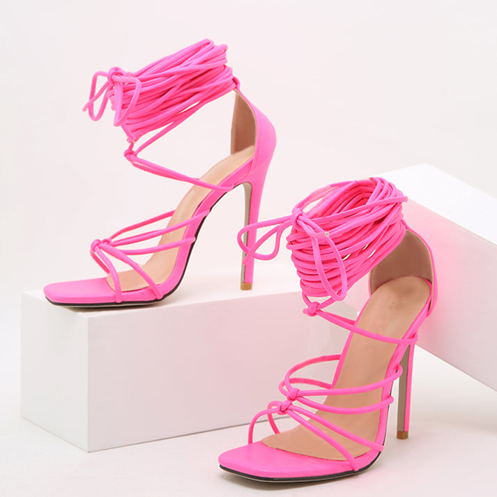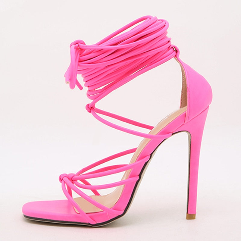 Roman Sandals Cross Strap Stiletto Square Toe High Heels Lace Up Sexy Ladies Fashion Sandals Pumps Long Summer Boots