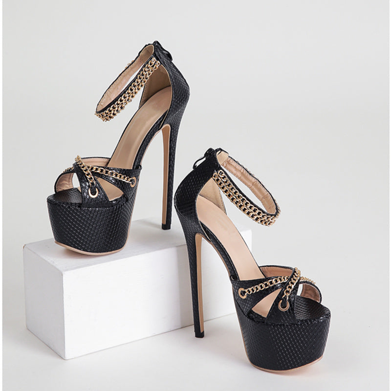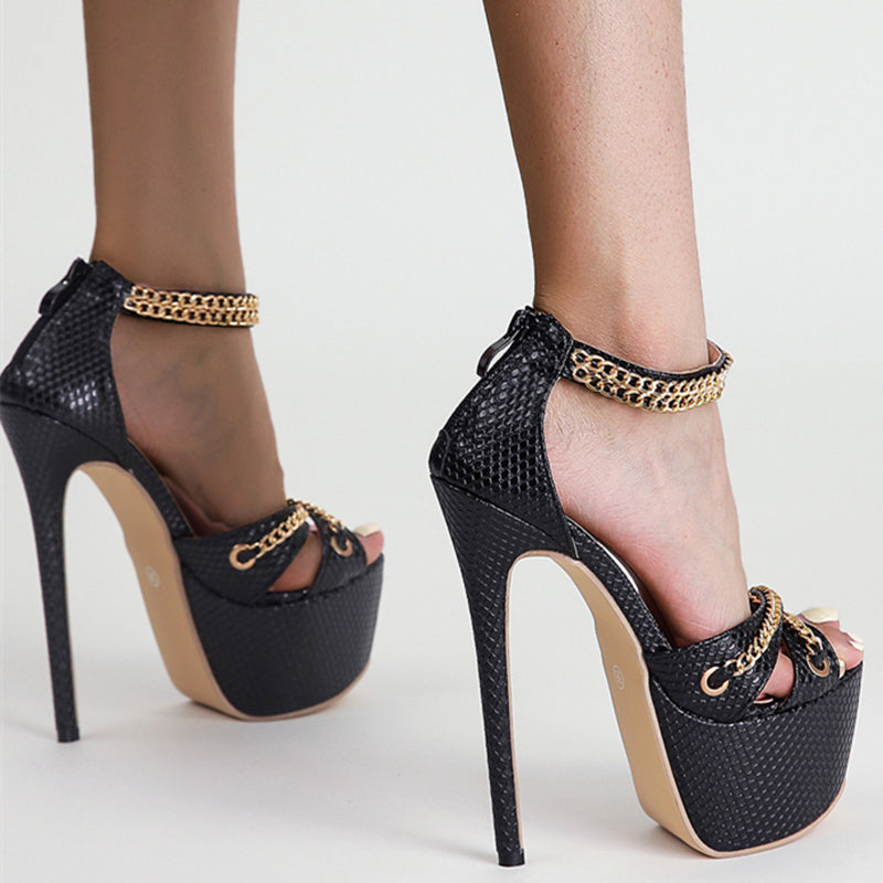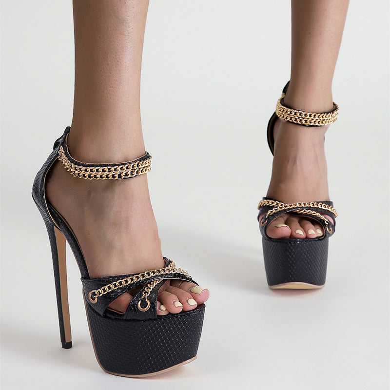 Women Sandals High Heels Metal Chain Buckle Platform Heeled Party Shoes Big Size 42 New Fashion Dress Sandalias