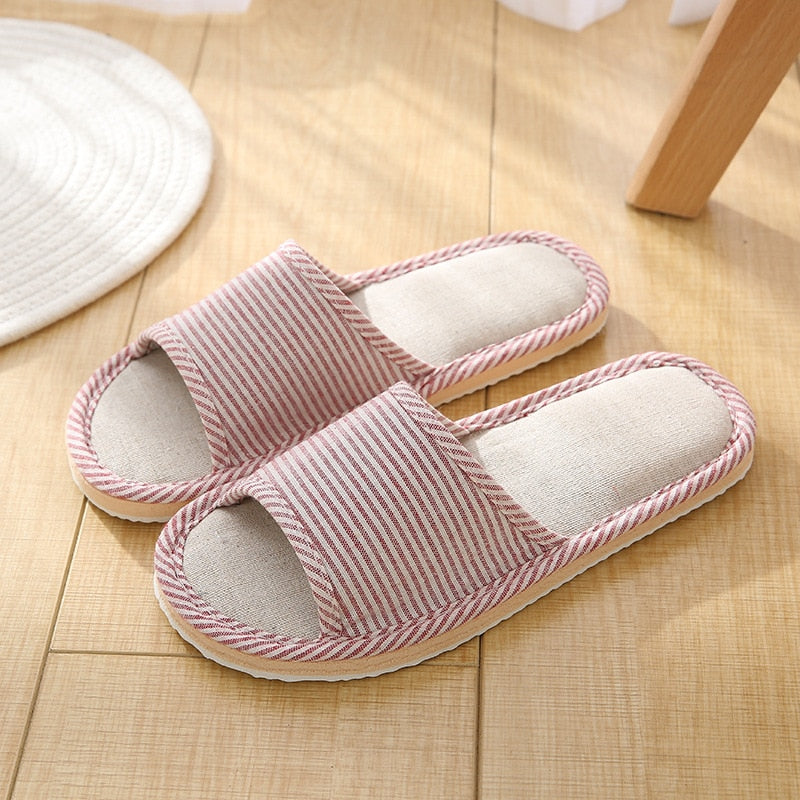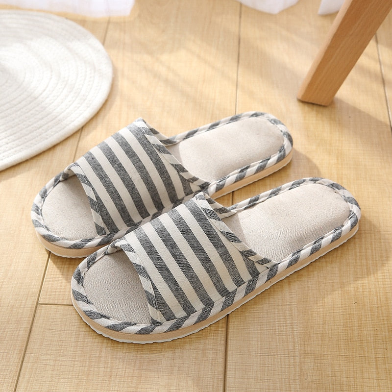 Linen Indoor Slippers Four Seasons Striped Cotton Slippers Couples Absorbing Sweat Soft Bottom Home Wood Floor Sandals