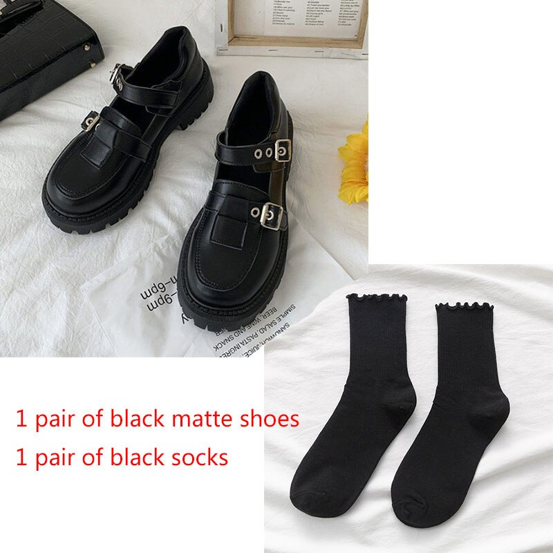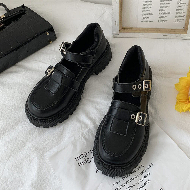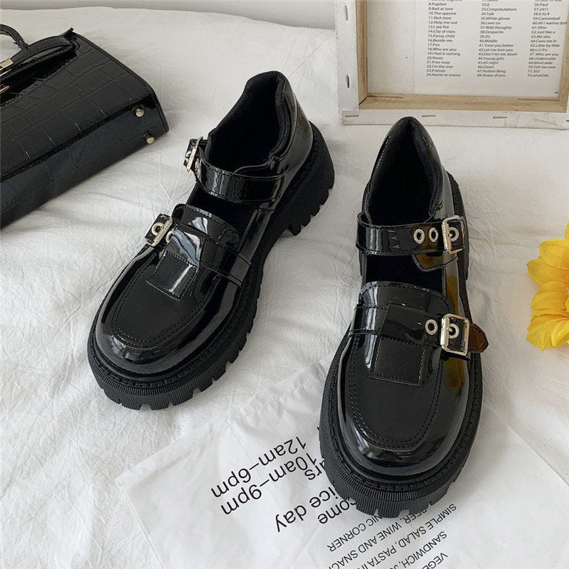 Lolita Shoes Patent Leather Mary Janes Shoes 2022  New Women Platform Shoes Buckle Girls Thick Sole Ladies Shoes Black