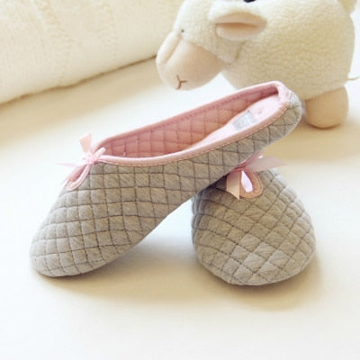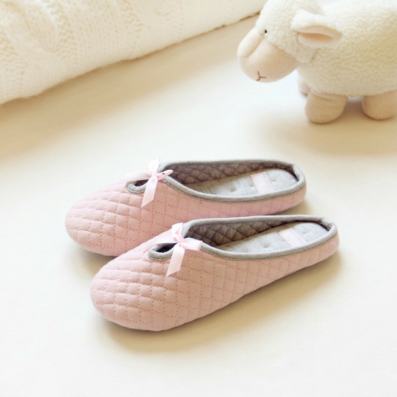 Lovely Bowtie Winter Women Home Slippers For Indoor Bedroom House Soft Bottom Cotton Warm Shoes Adult Guests Flats