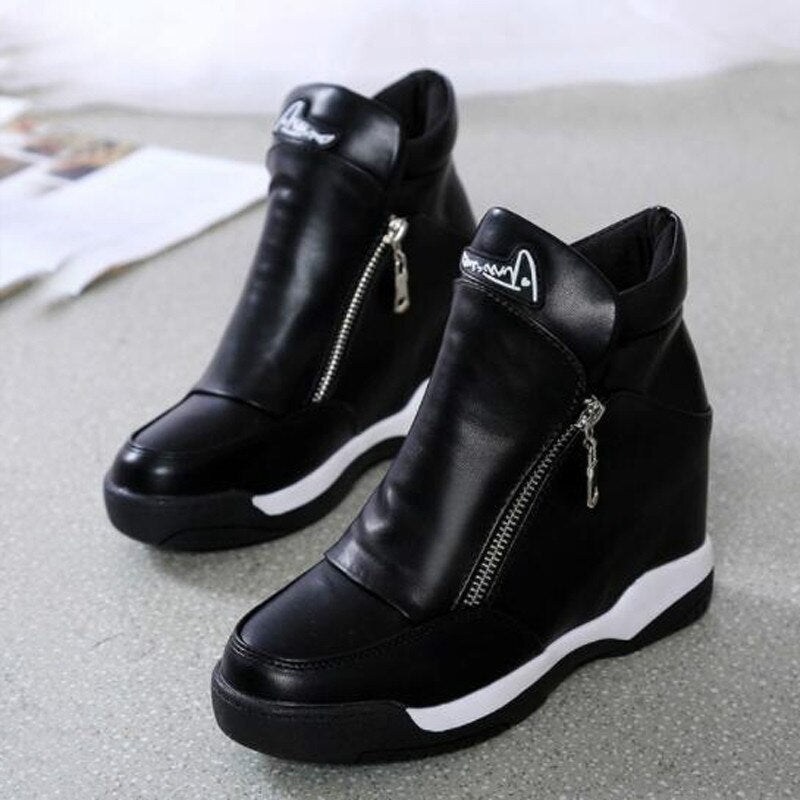 Miaoguan Winter Fur Sneakers Platform Woman Autumn High Top Female Casual Shoes Wedge Side Zipper Fashion Warm Snow Sneakers
