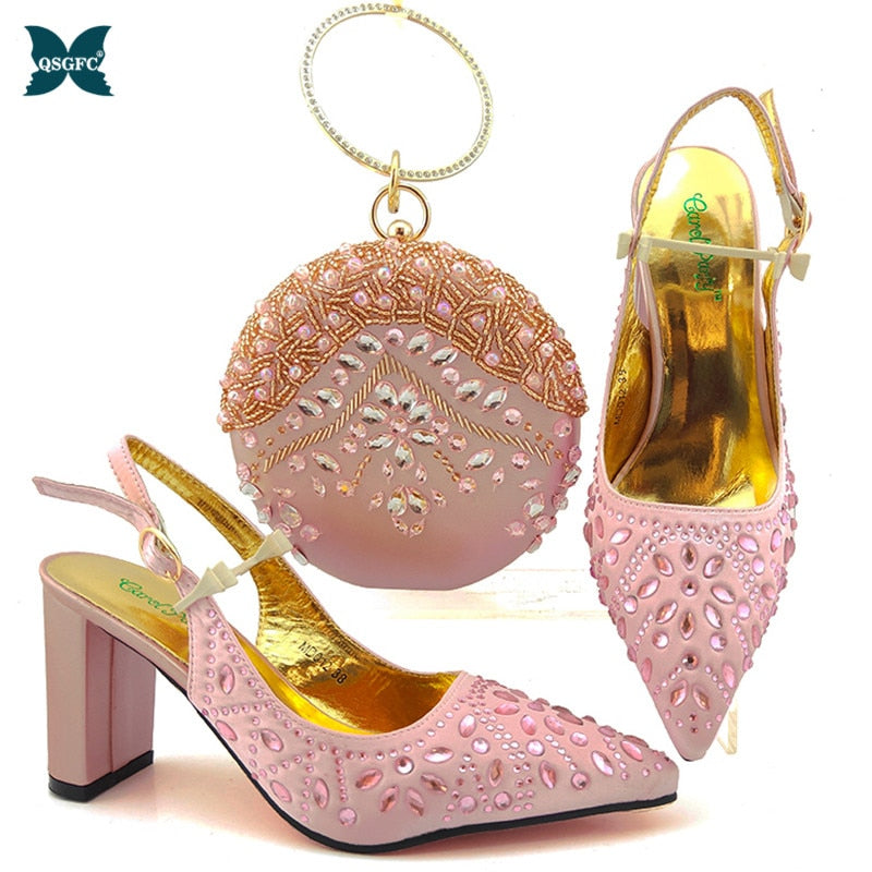 New Arrival Winter Silver Color Italian Design Women Shoes and Bag Set African Matching Shoes and Bag for Royal Party