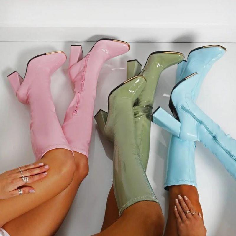New Arrival Women Platform Thigh Boots Pink Black Party Shoes Plus Size Patent Leather Ytmtloy Knee High Botines De Mujer Sexy