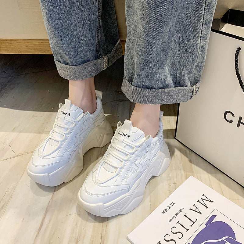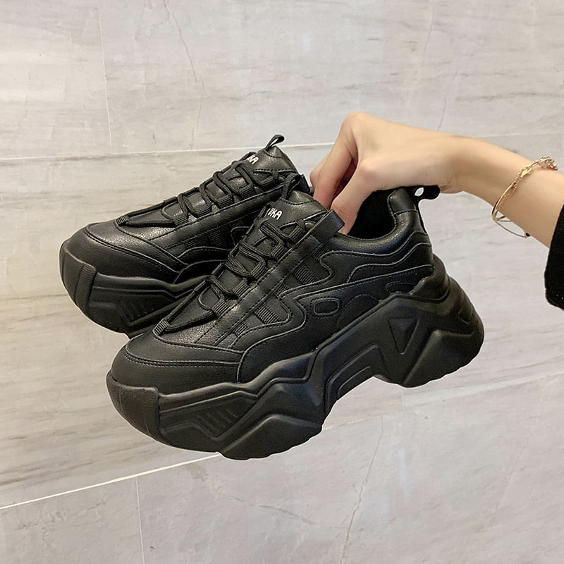 New Black Dad Chunky Sneakers Casual Vulcanized Shoes Woman High Platform Sneakers Lace Up White Sneakers Women 2022