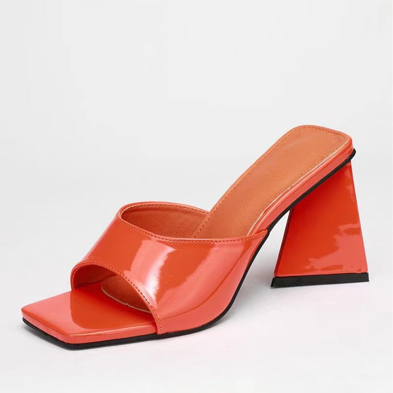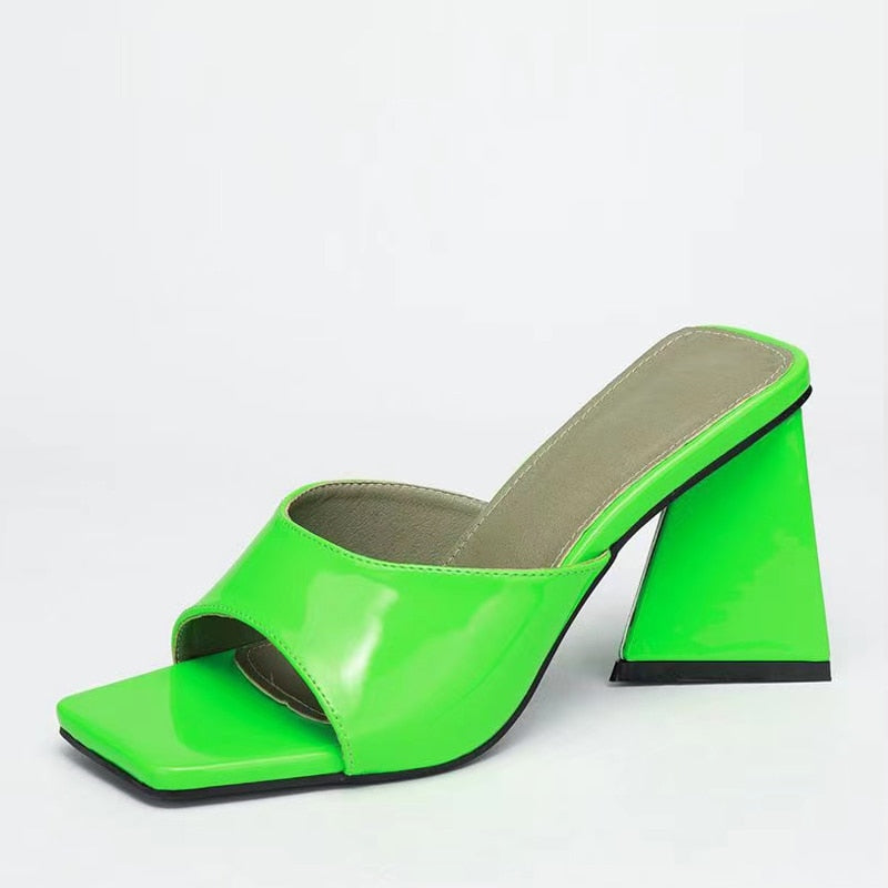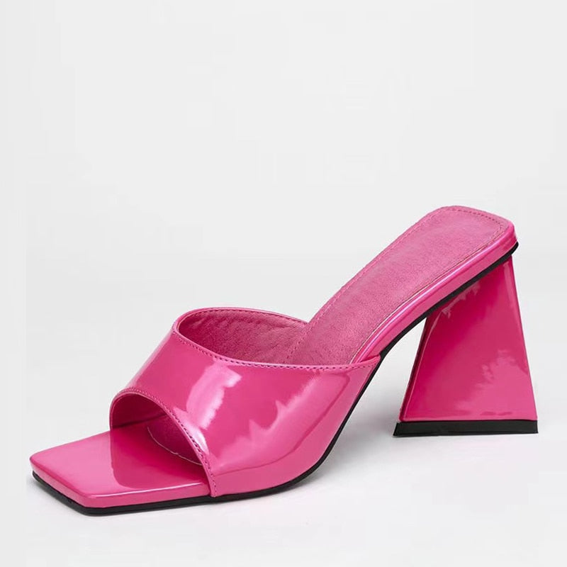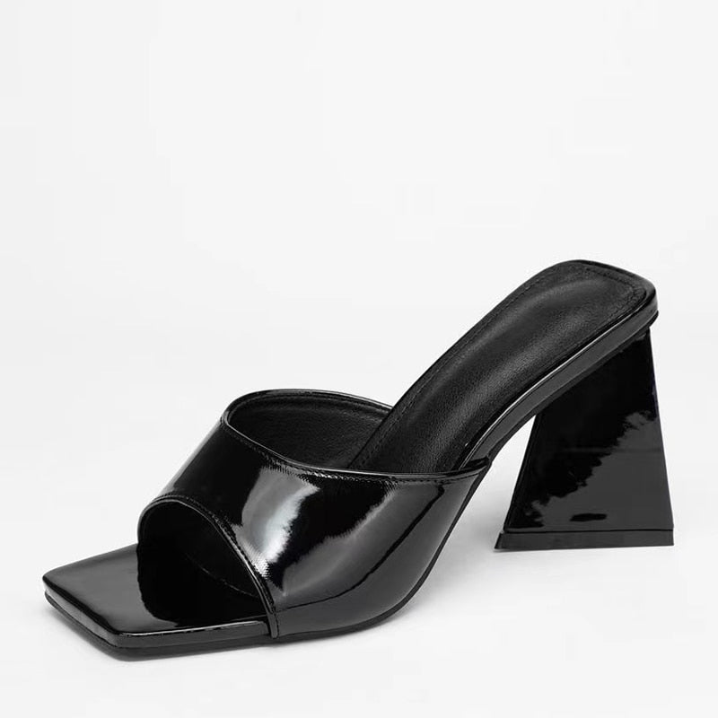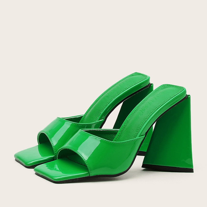 New Brand Mule Women Slippers Outdoor Fashion Design Triangle Strange Heels Summer Sandals Elegant Square Open Toe Party Shoes