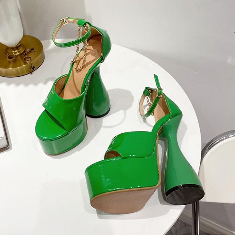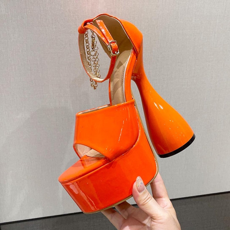 New Brand Orange Green Patent Leather Platform Sandals Fashion Big Fish Peep Toe Club Thick-Soled Strange High Heels Danc Shoes