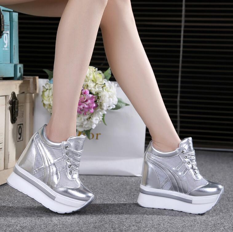 NEW Brand Women Mesh Platform Sneakers Trainers White Shoes 10CM High Heels Wedges Outdoor Shoes Breathable Casual Shoes Woman