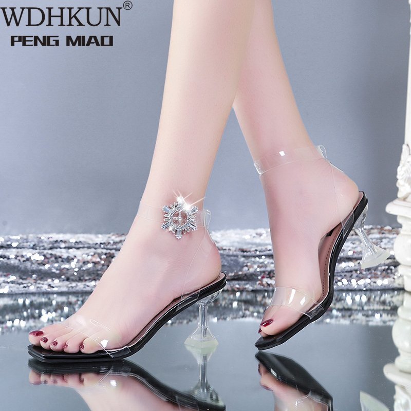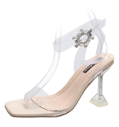 NEW Square Toe Summer Women Sandals Fashion Transparent Spike Heels Thin High Heel Buckle Strap Party Dress Ladies Shoes