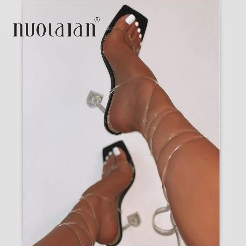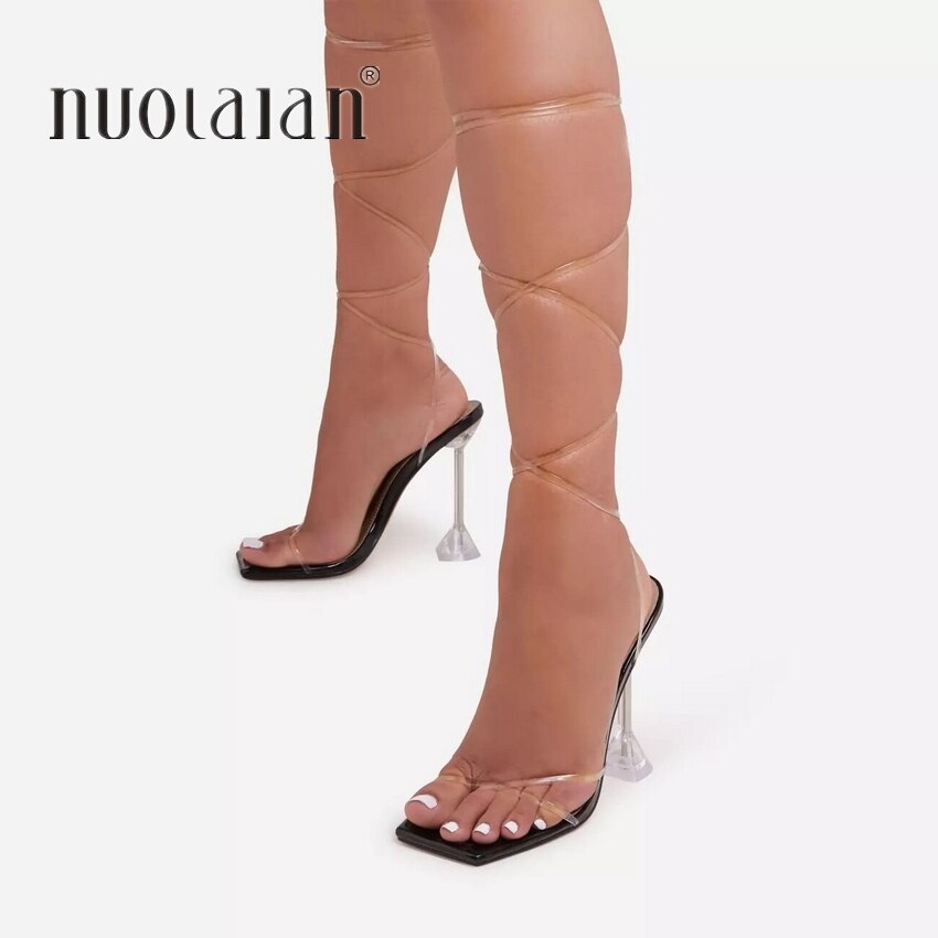 NEW Summer Sexy PVC Cross-Tied Women Sandals Peep Toe Transparent High Heels Fashion Ladies Gladiator Party Shoes