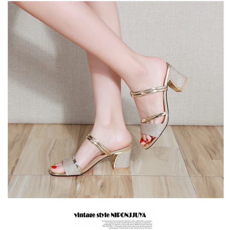 New Summer Women Flat Sandals Shoes Women Square Heel Sandalias Buckle Sandals High Heels Strap Sandals Block Heel Shoes