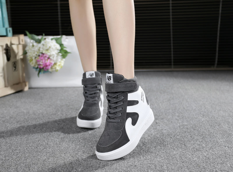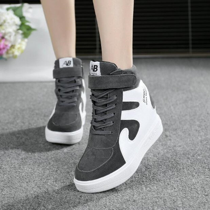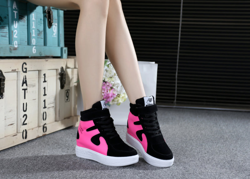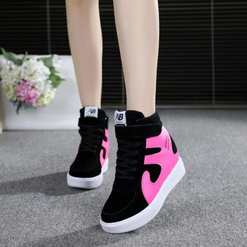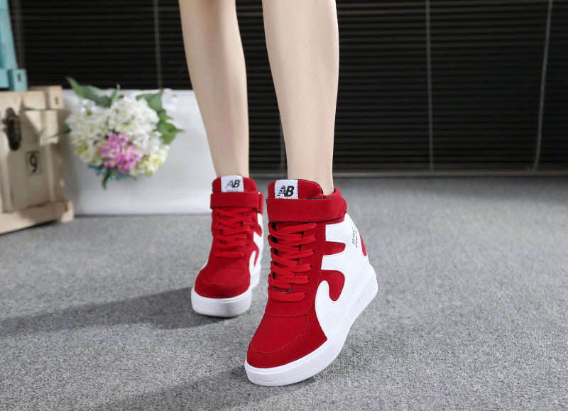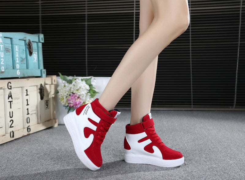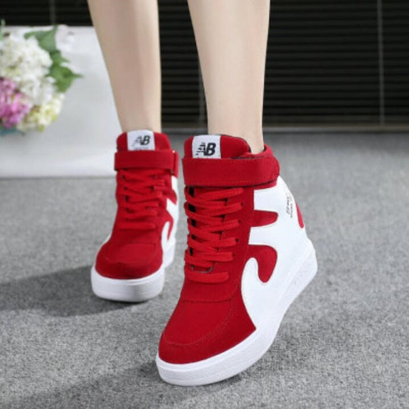 NEW Thick Platform Sneakers Casual Lace-Up Wedges High Heel Womens Sport Shoes Outdoor Black Red Platform Vulcanize Shoes Women