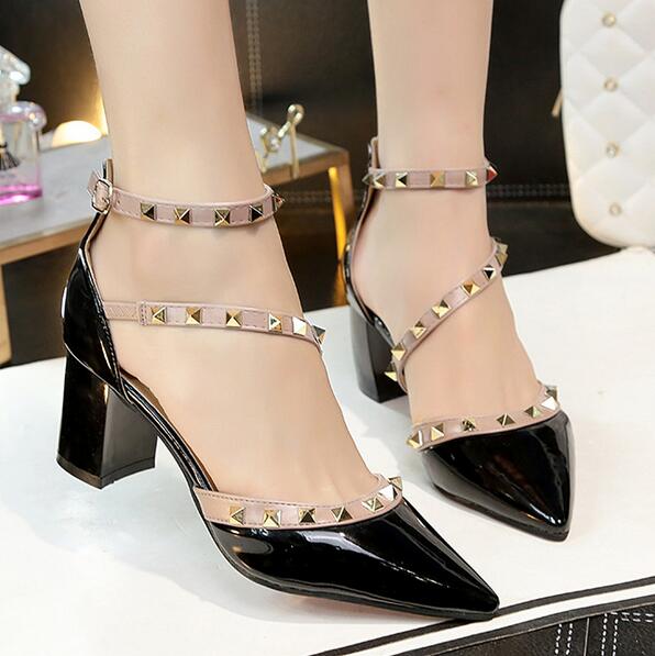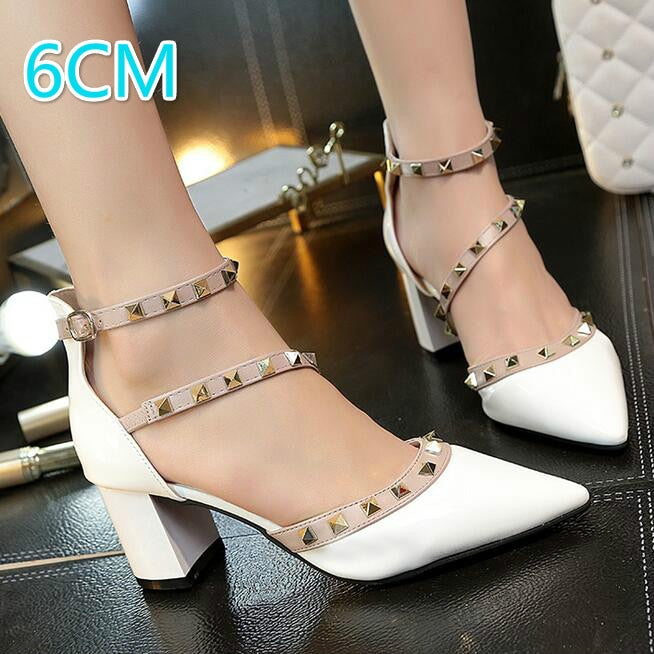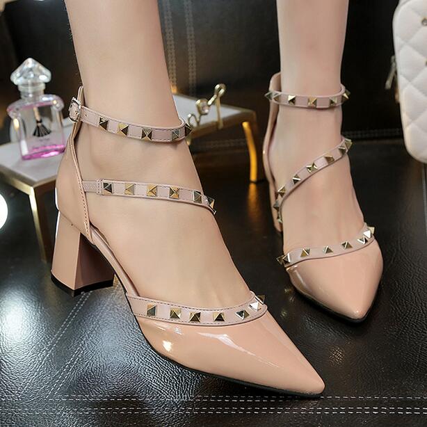 NEW Woman High Heels Shoes Ladies Sexy Pointed Toe Pumps Buckle Rivets Nude Heels Dress Wedding Shoes Dropshipping