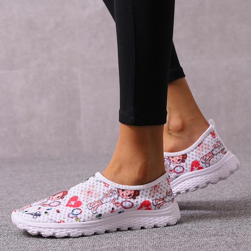 New Women Casual Shoes Mesh Women's Sneakers Sweet Cartoon Women Shoes Slip On Nurse Female Ladies Shoes Platform Sneakers Women