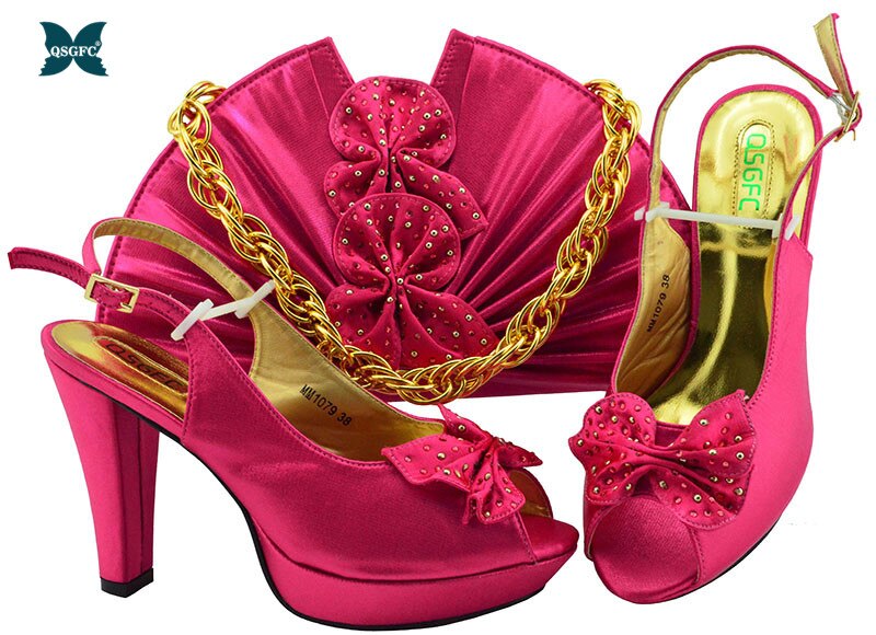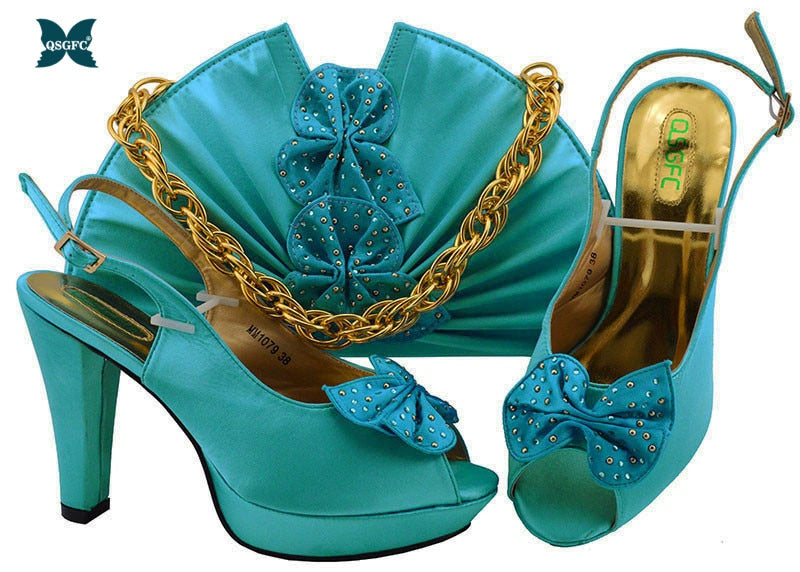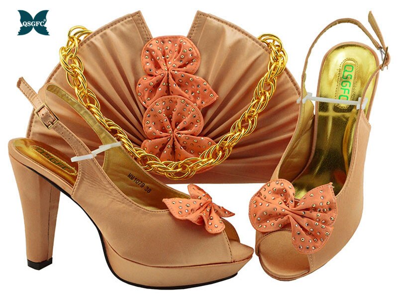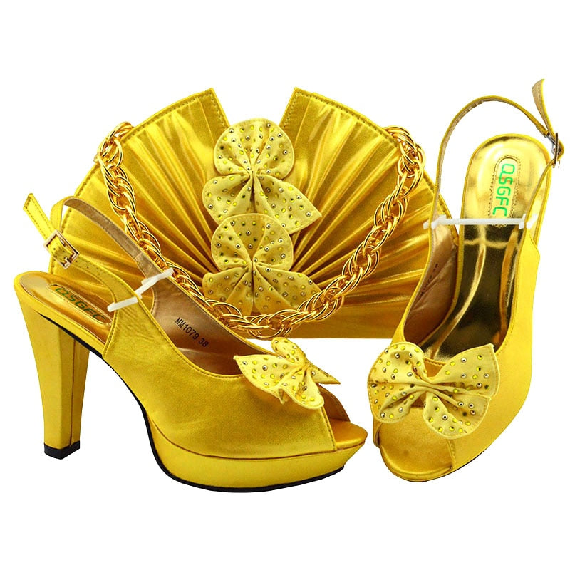 Newest Autumn Italian design Ladies Shoes with Matching Bag High Quality African Nigeria Shoe and Bag set in Yellow Color