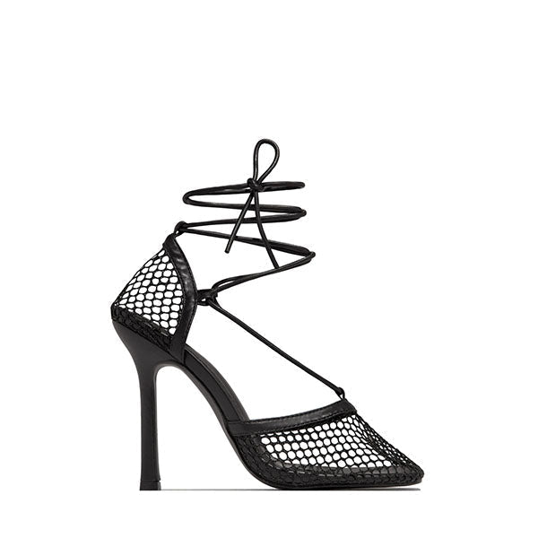 Fishnet Squared Toe Lace Up Heels