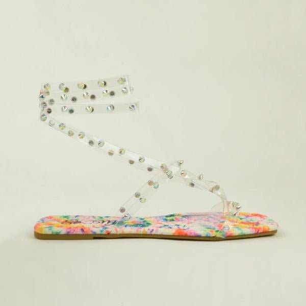 Gold-Tone Stud Adjustable Around Ankle Sandals