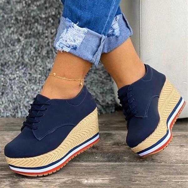 Lace Up Wedge Platform Ankle Sneakers