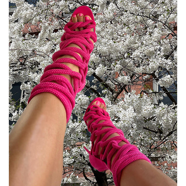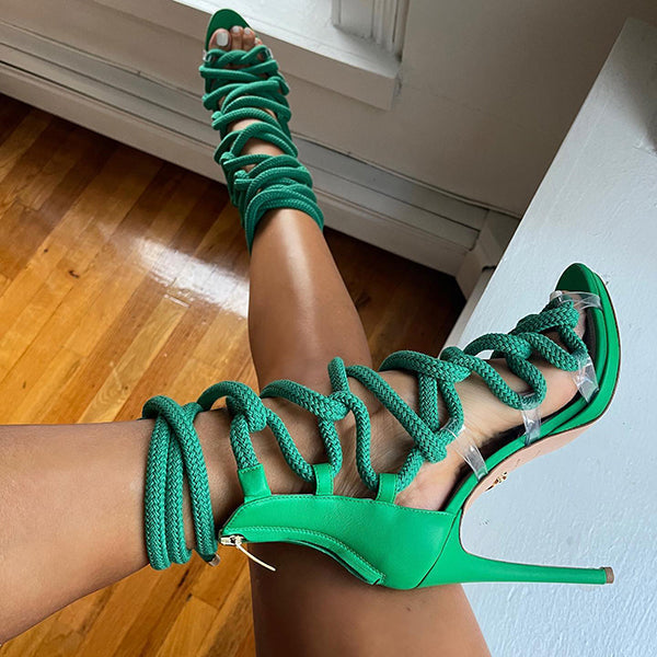 Stylish Open Toe Lace Up Stiletto Heels