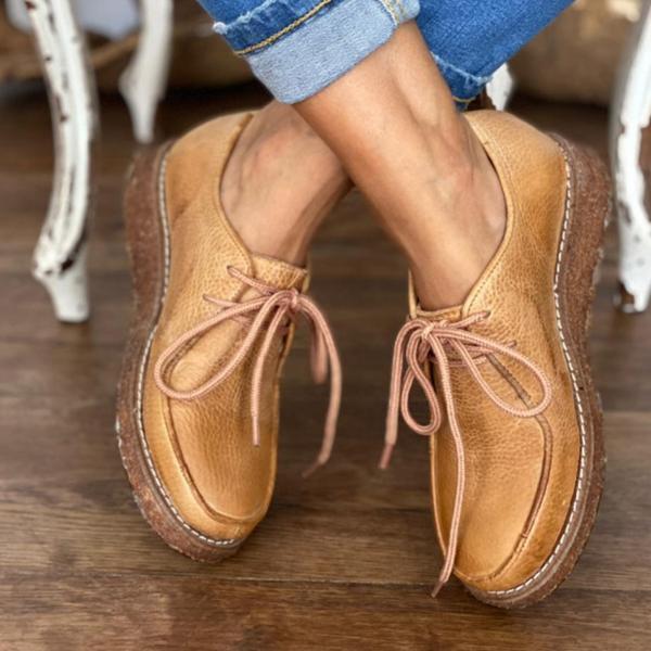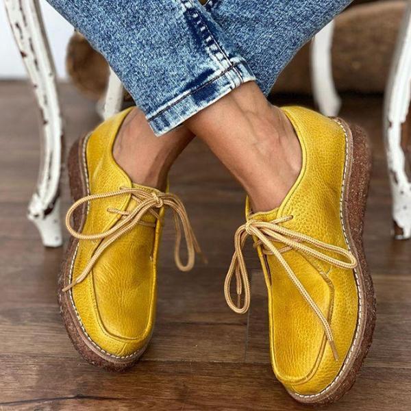 Women Coze Vegan Leather Lace Up Flat Shoes