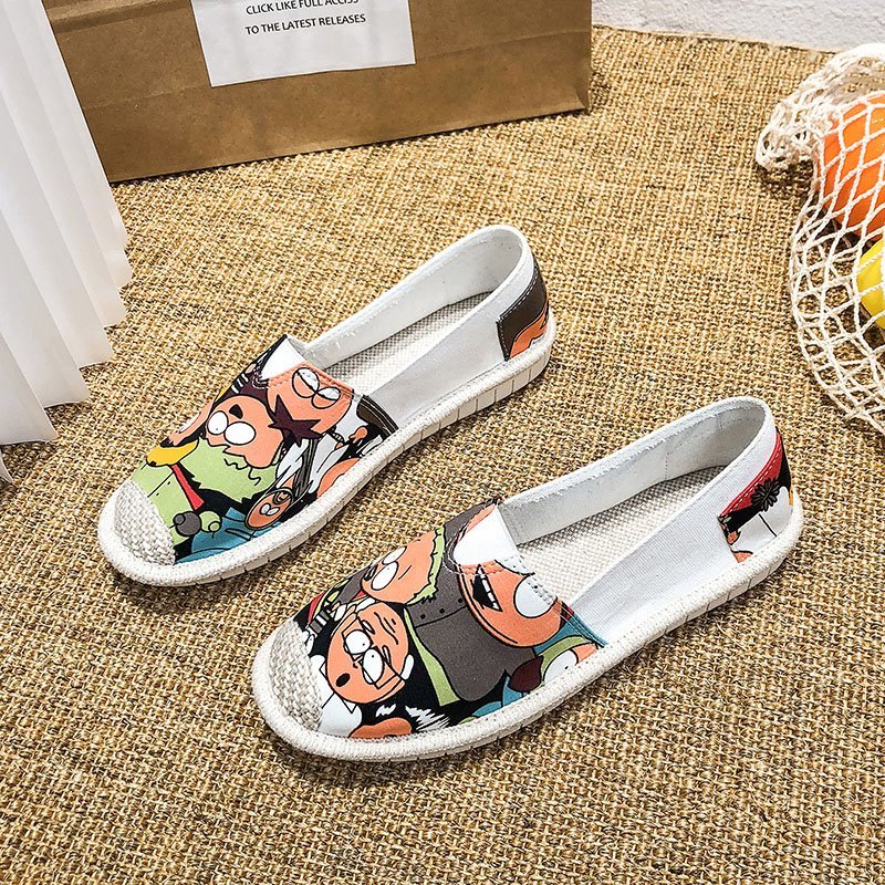 Patchwork Espadrilles Shoes Woman Creepers Flats Ladies Loafers White Moccasins Fringe Sewing Driving Shoe Walking Canvas