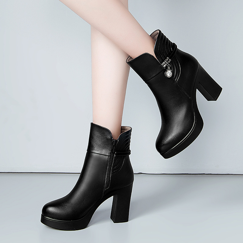 Qengg Boots Women's Thick Heels Large Size 40-43 Short Boots British Style Autumn And Winter Style High-Heeled Waterproof Platform Women's Boots