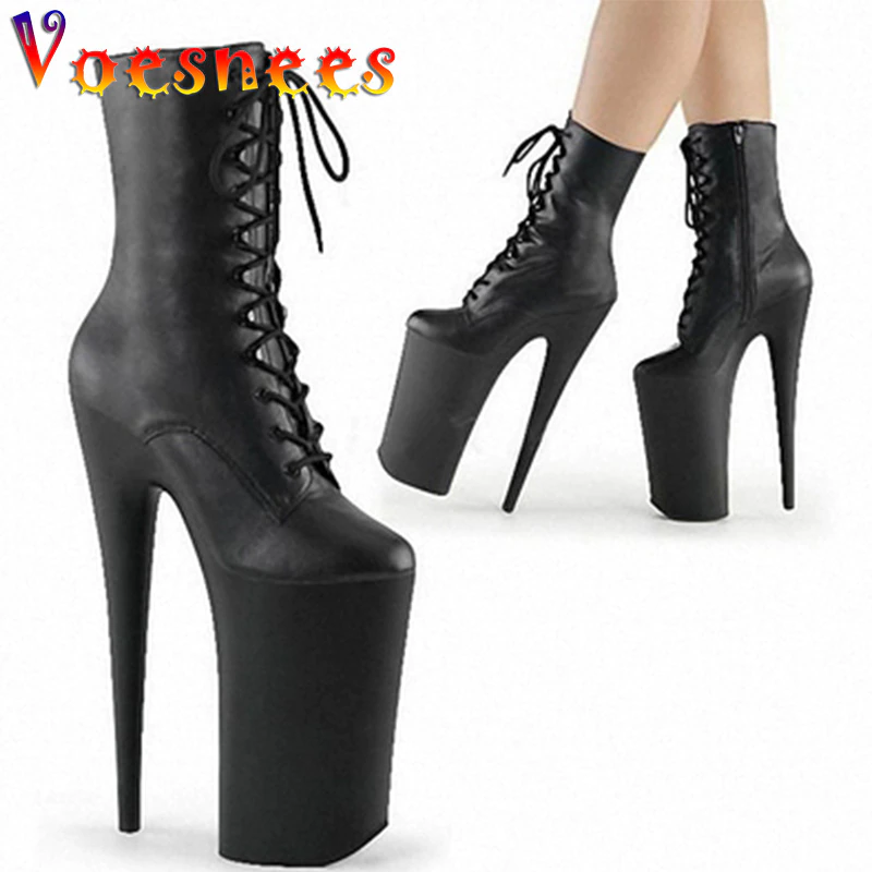Qengg Design Sexy Extreme Heel Shoes Erotic Lap Dancing Ankle Boot Lace Up Pole Dance Shoes Boots Platform Zipper Winter Gothic Shoes
