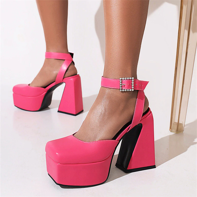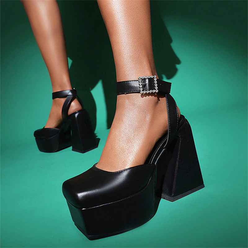 Qengg MCCKLE Summer Sandals Women Square Toe Platform High Heels Ladies Shoes Sexy Designer Party Wedding Female Sandal Woman Pumps