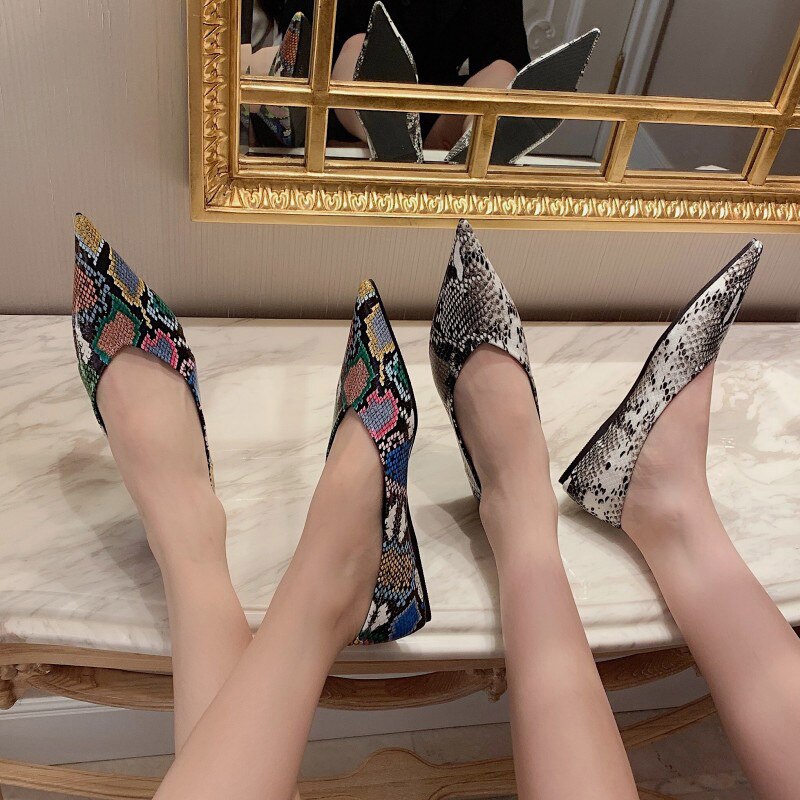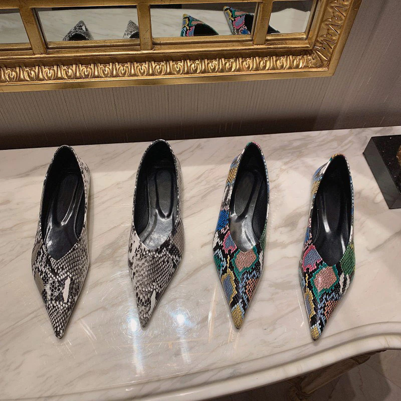 Qengg MCCKLE Woman's Flat Shoes Pointed Toe Serpentine Printing Woman Loafers Leather Slip On Shallow Ladies Autumn Shoes Female Flats