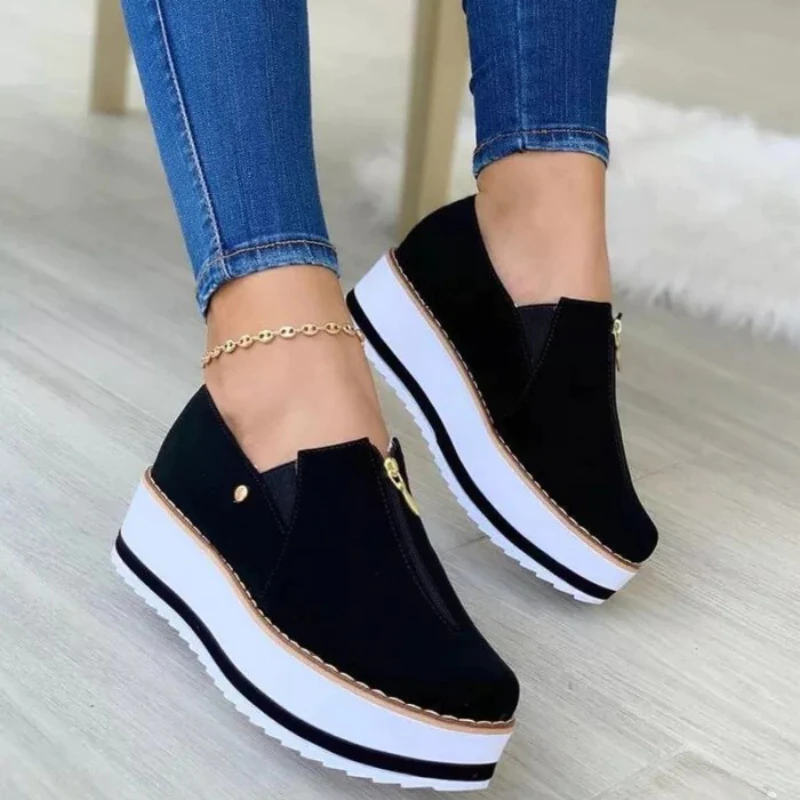 Qengg New Women Casual Shoes Fashion Round Toe Platform Wedge Loafers Slip-On Lightweight Comfortable Vulcanized Shoes Sapatos Casuais