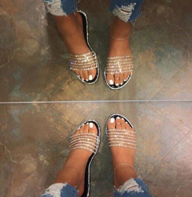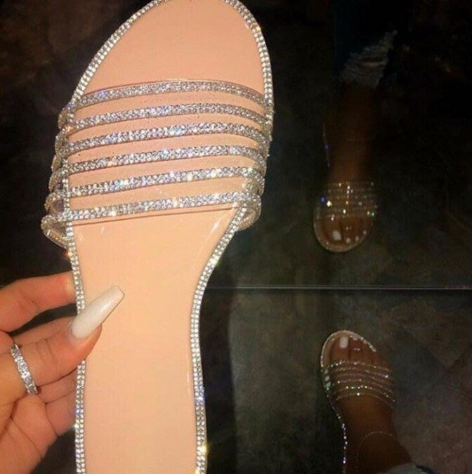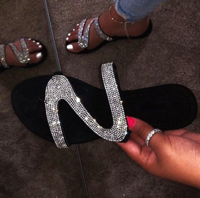 Qengg New Women's Slippers Fashion Rhinestone Home Flat Sandals Outdoor Snake Pattern Multicolor Comfortable Flip Flops Chinelo Casa