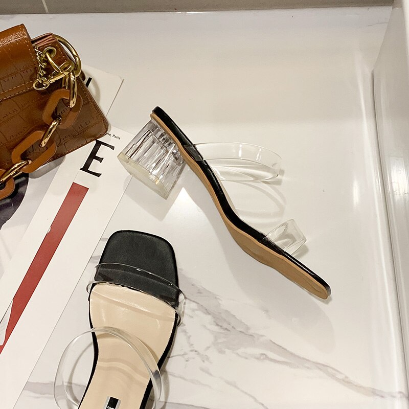 Qengg Women Sandals Low Mid Heels Beautiful Transparent Sexy Slippers(Size 35-45)