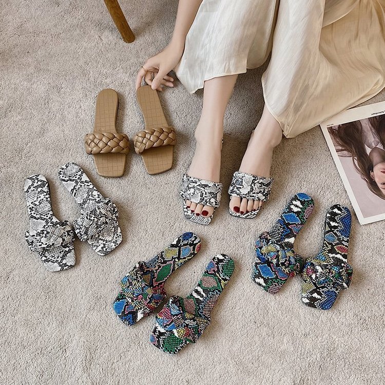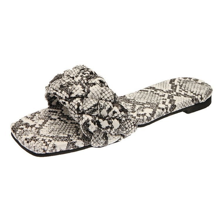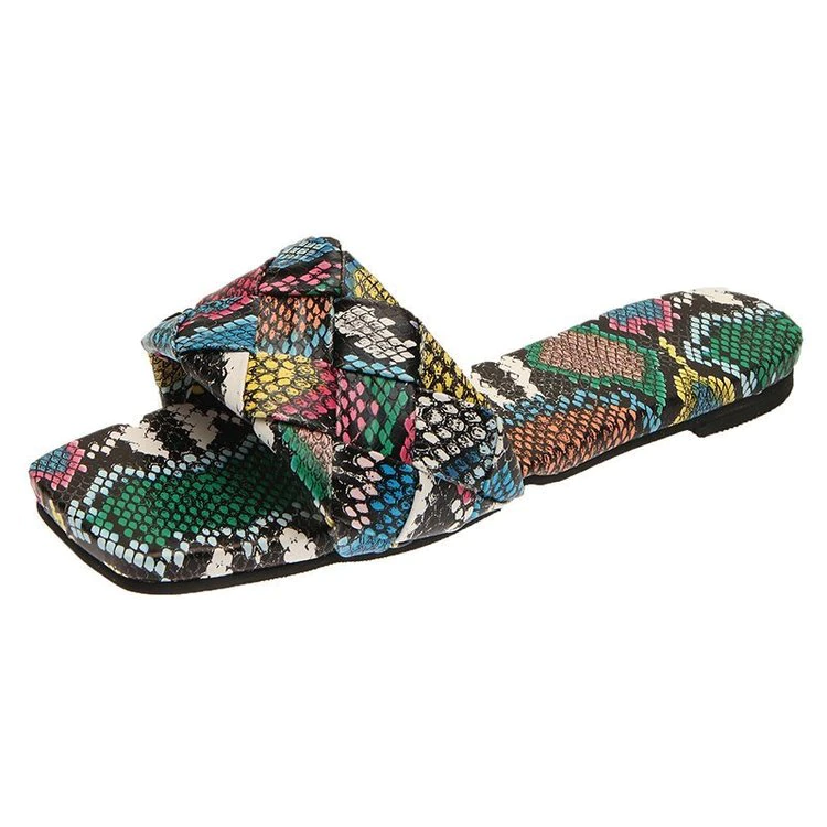 Qengg Women Slippers 2022 Summer Plus Size Fashion Closed Toe Sandals Women Snake Print Flat Slippers Women Weave Square Head Slippers