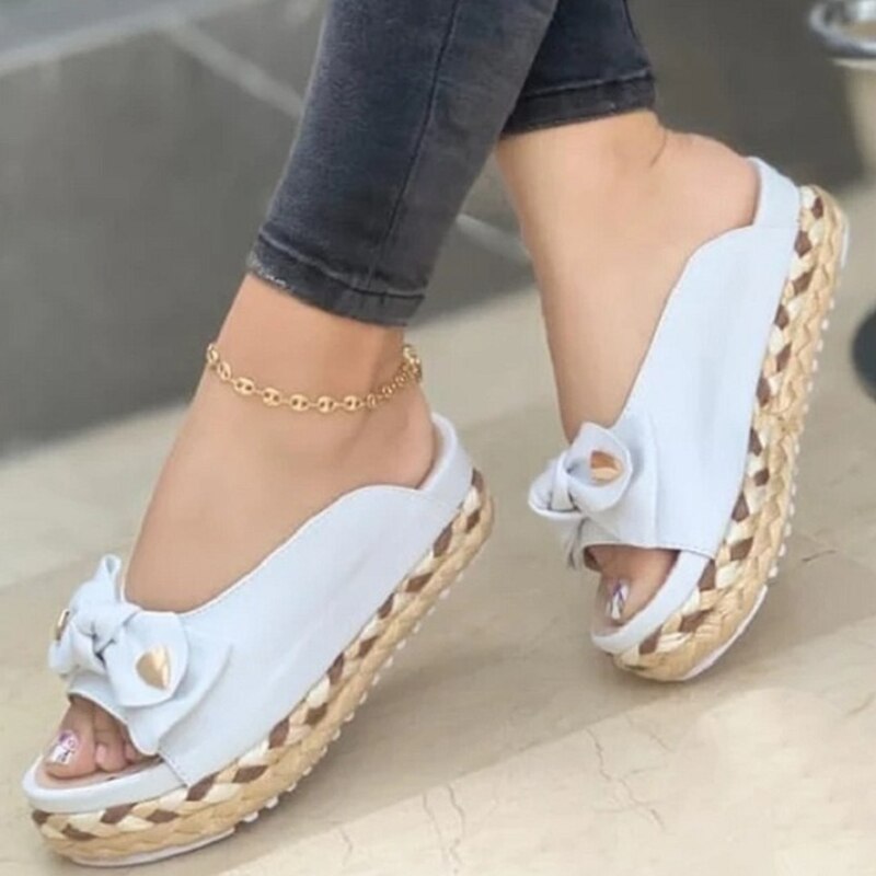 Qengg Women Woven Thick Sole Slippers Soft Stitching Ladies Sandals Comfortable Flat Sandals Women Open Toe Beach Shoes Woman Footwear