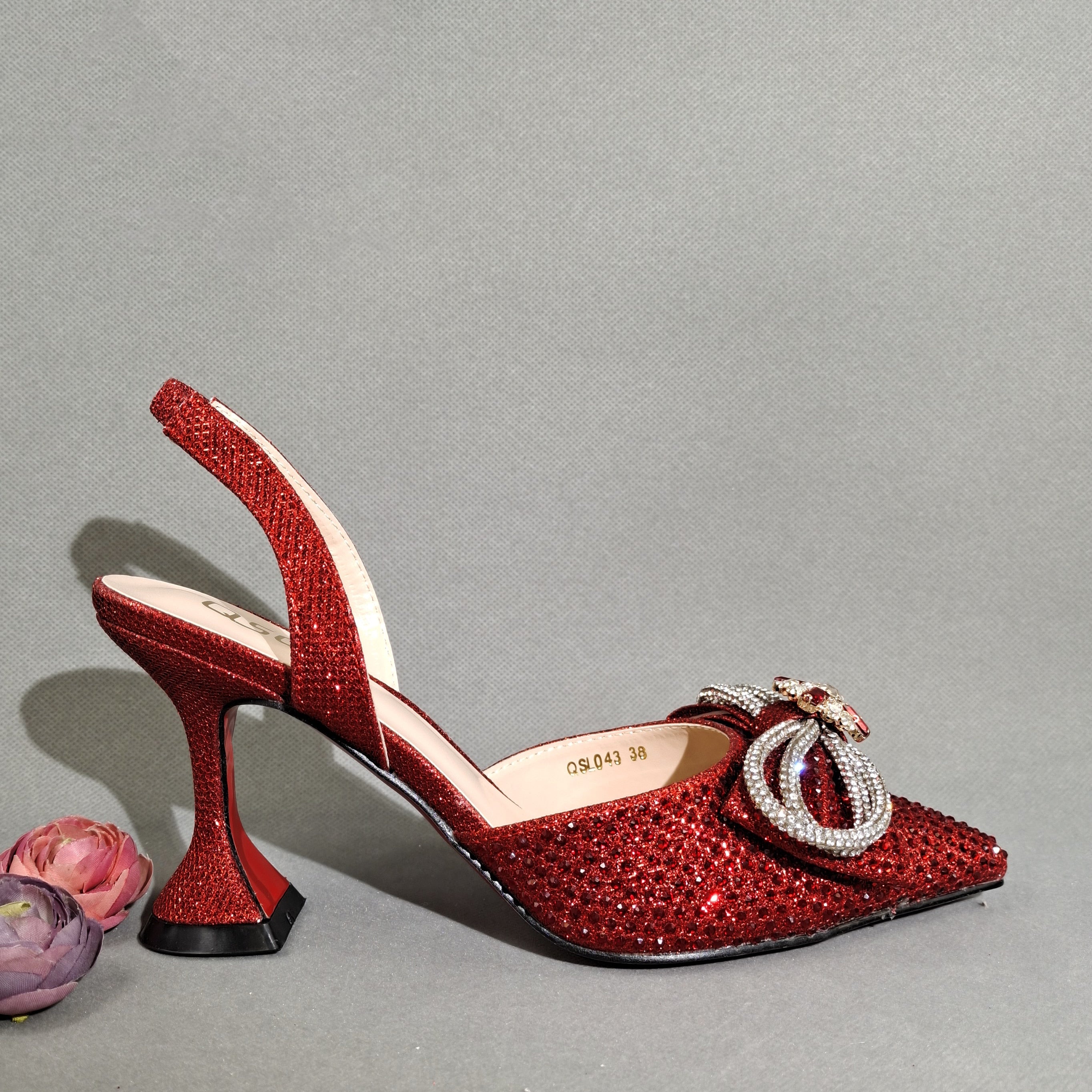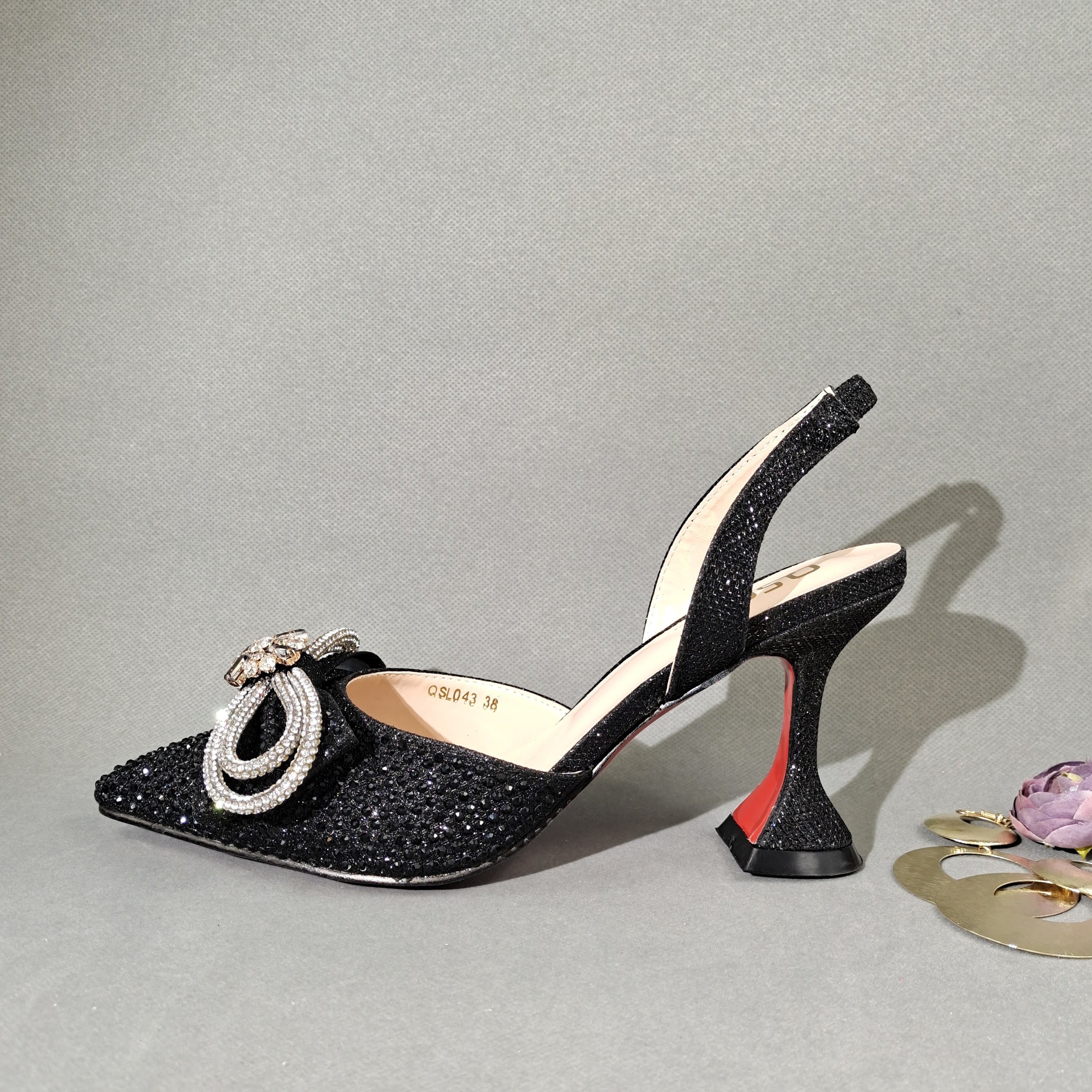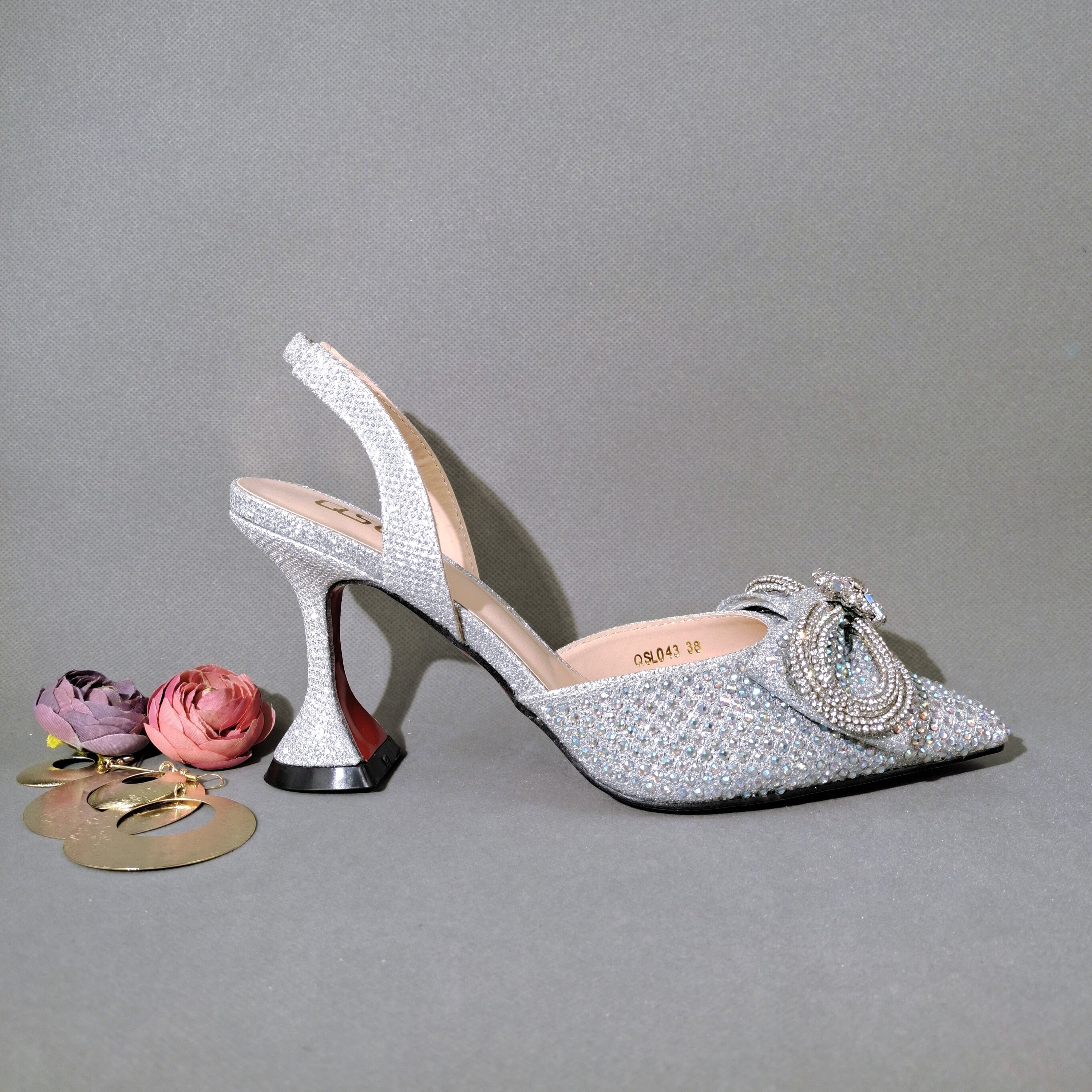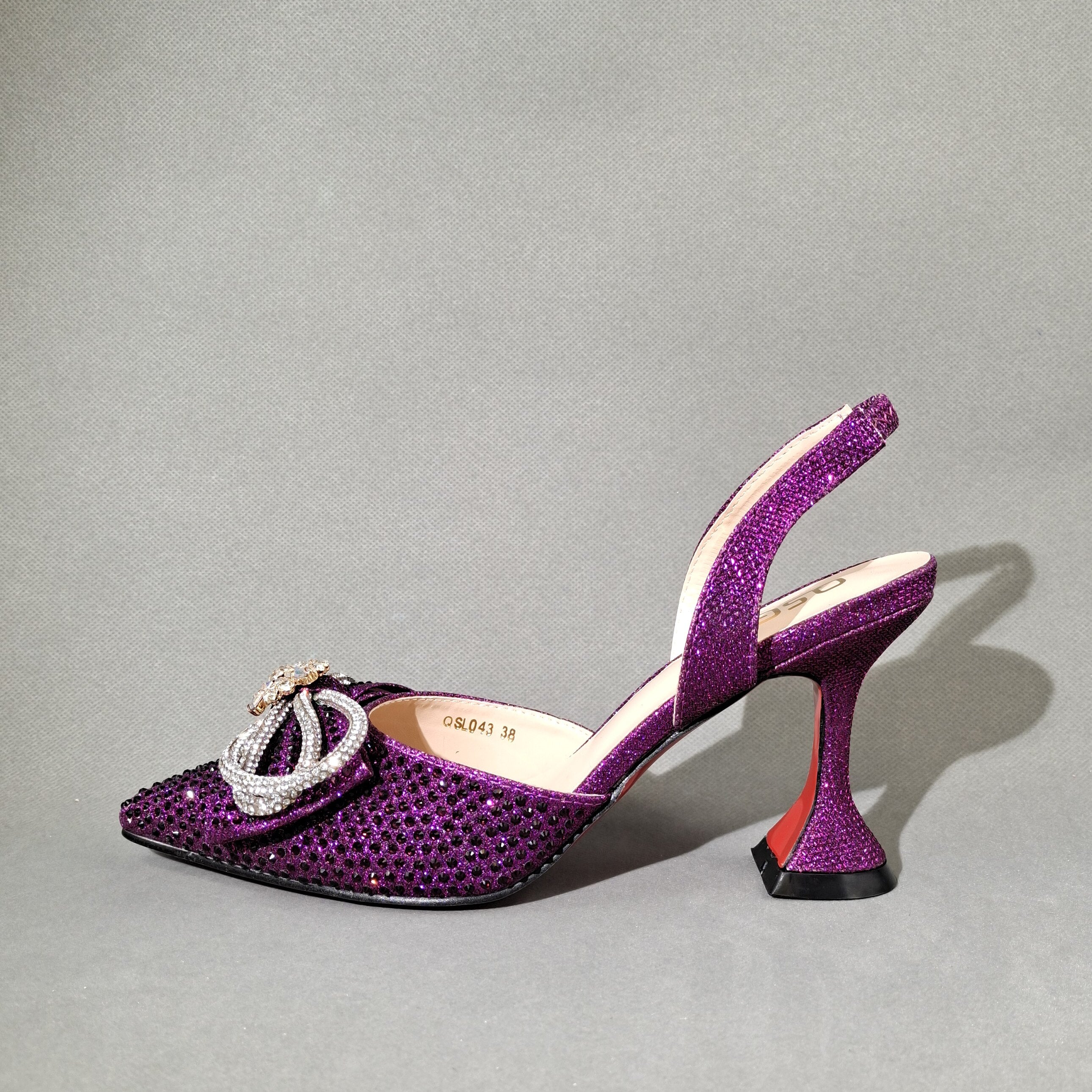 QSGFC 2022 Popular pointed Full of diamonds and shiny shoes with bags, banquet shoes and bags, and friends party shoes with bags