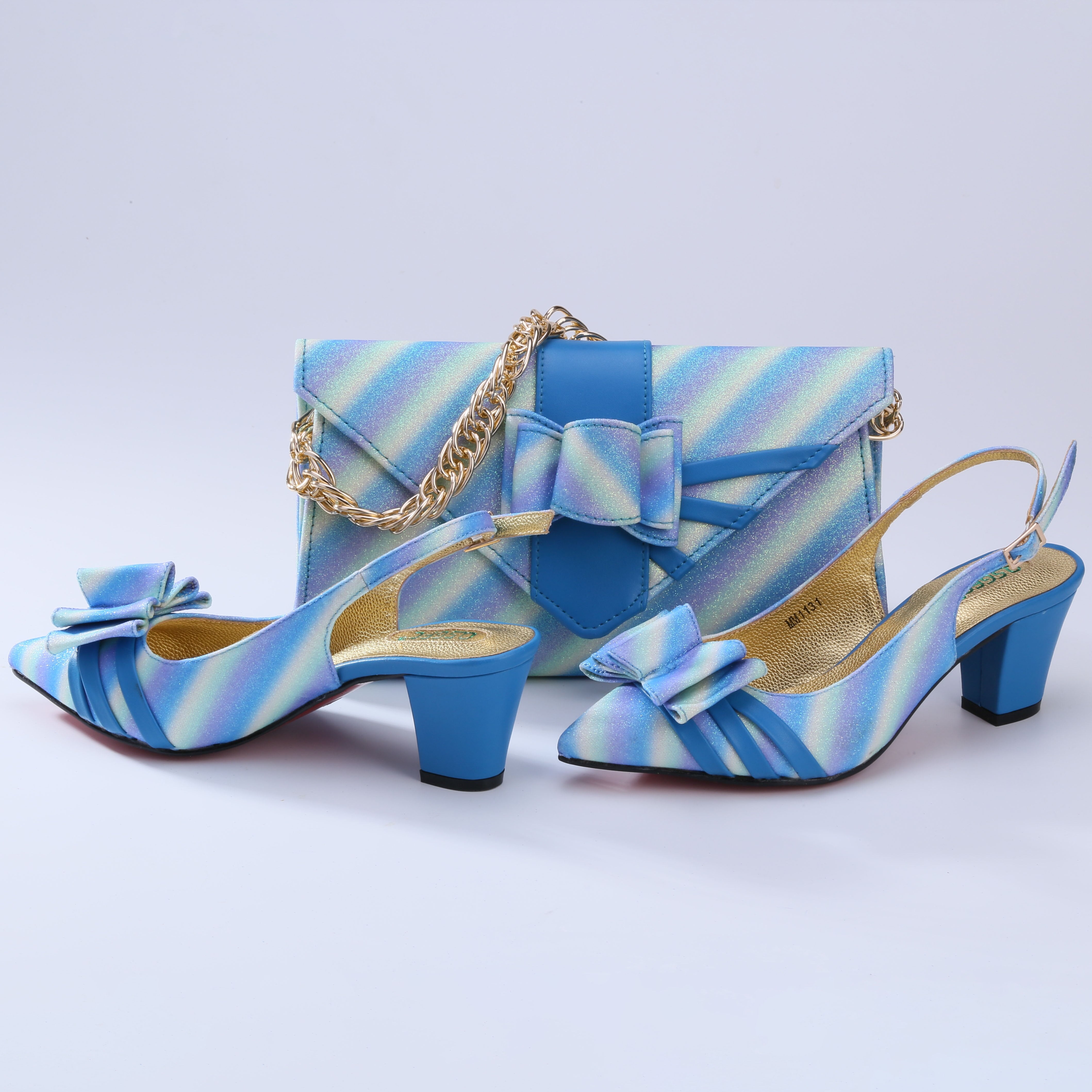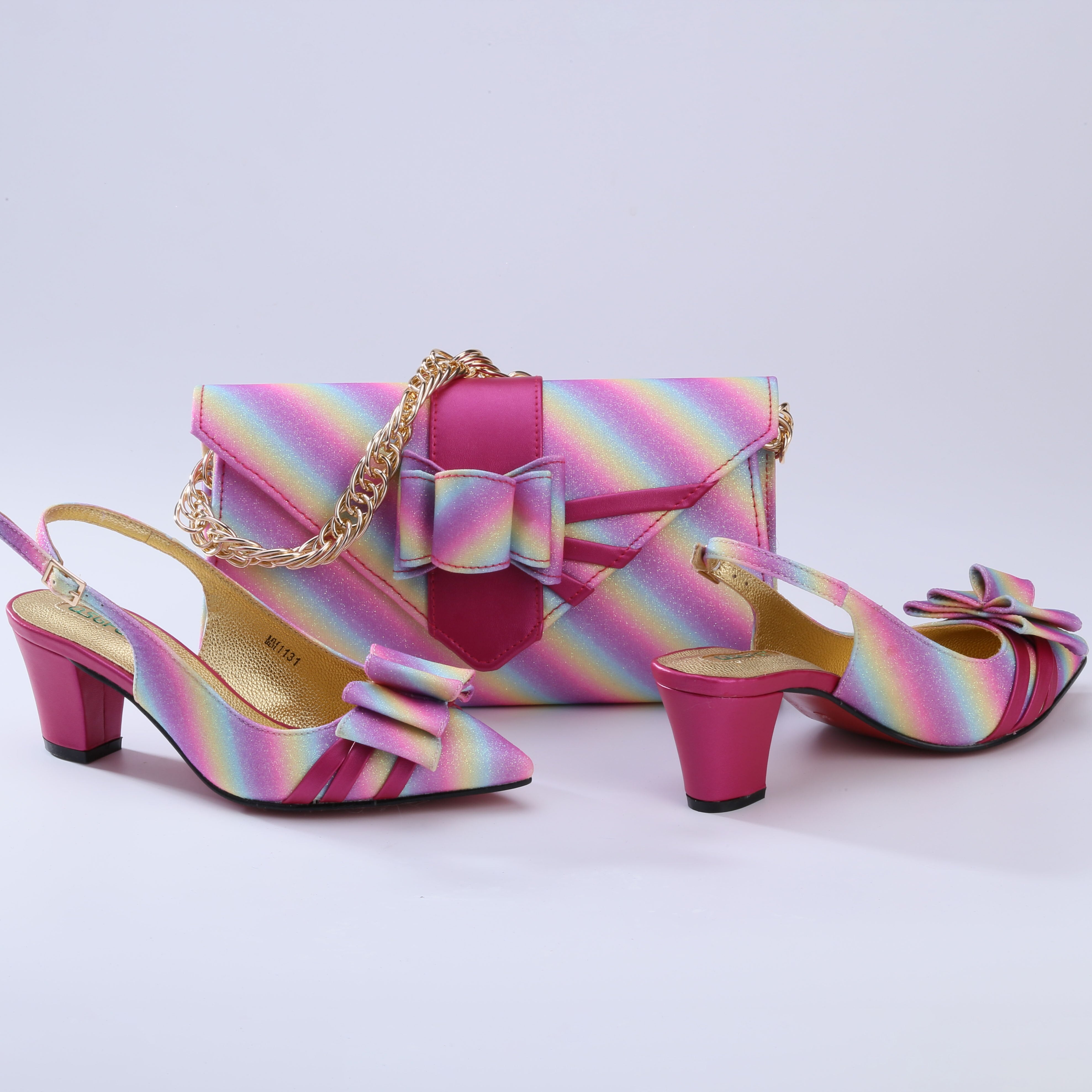 QSGFC New Coming Italian Design African Colorful Stripes Pattern Style Women Shoes and Bag Set in Orange Color for Party Wedding