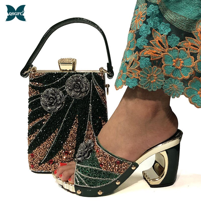QSGFC Peach Color Italian Elegant Shoes for Women Bag Set for Party and Wedding Cristal High Quality Tile Drill Face Design
