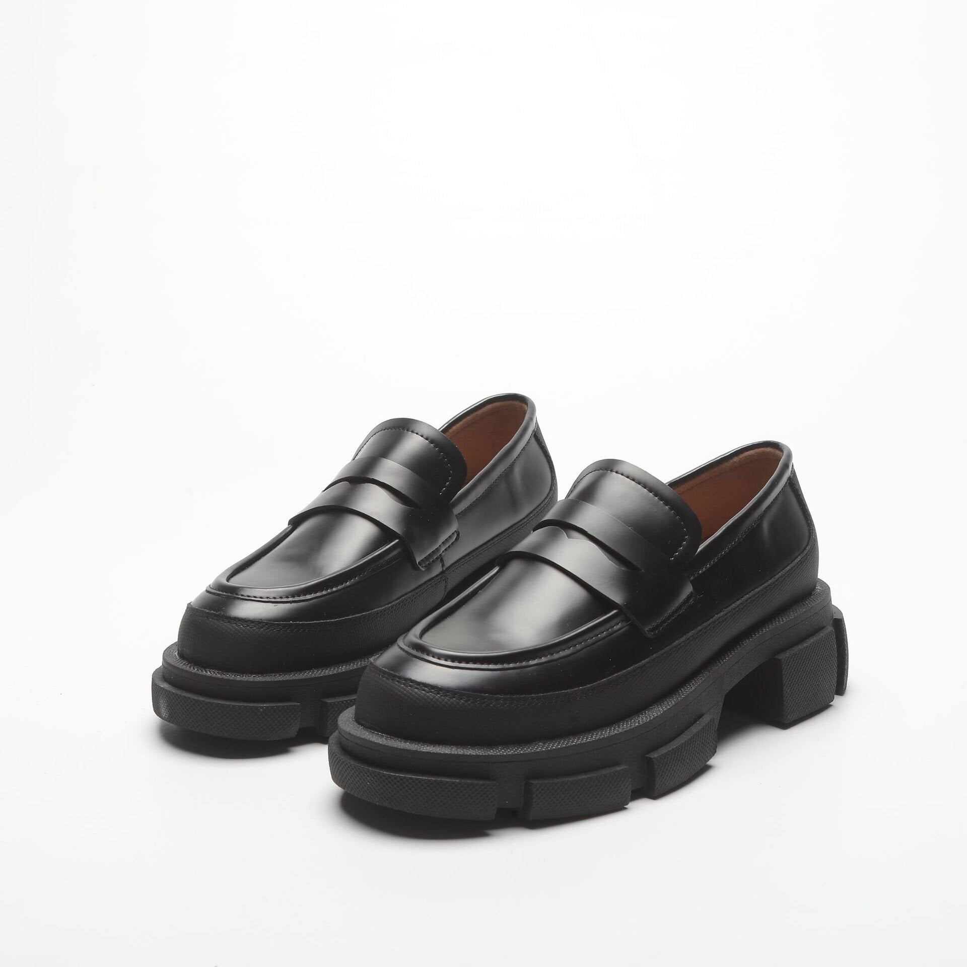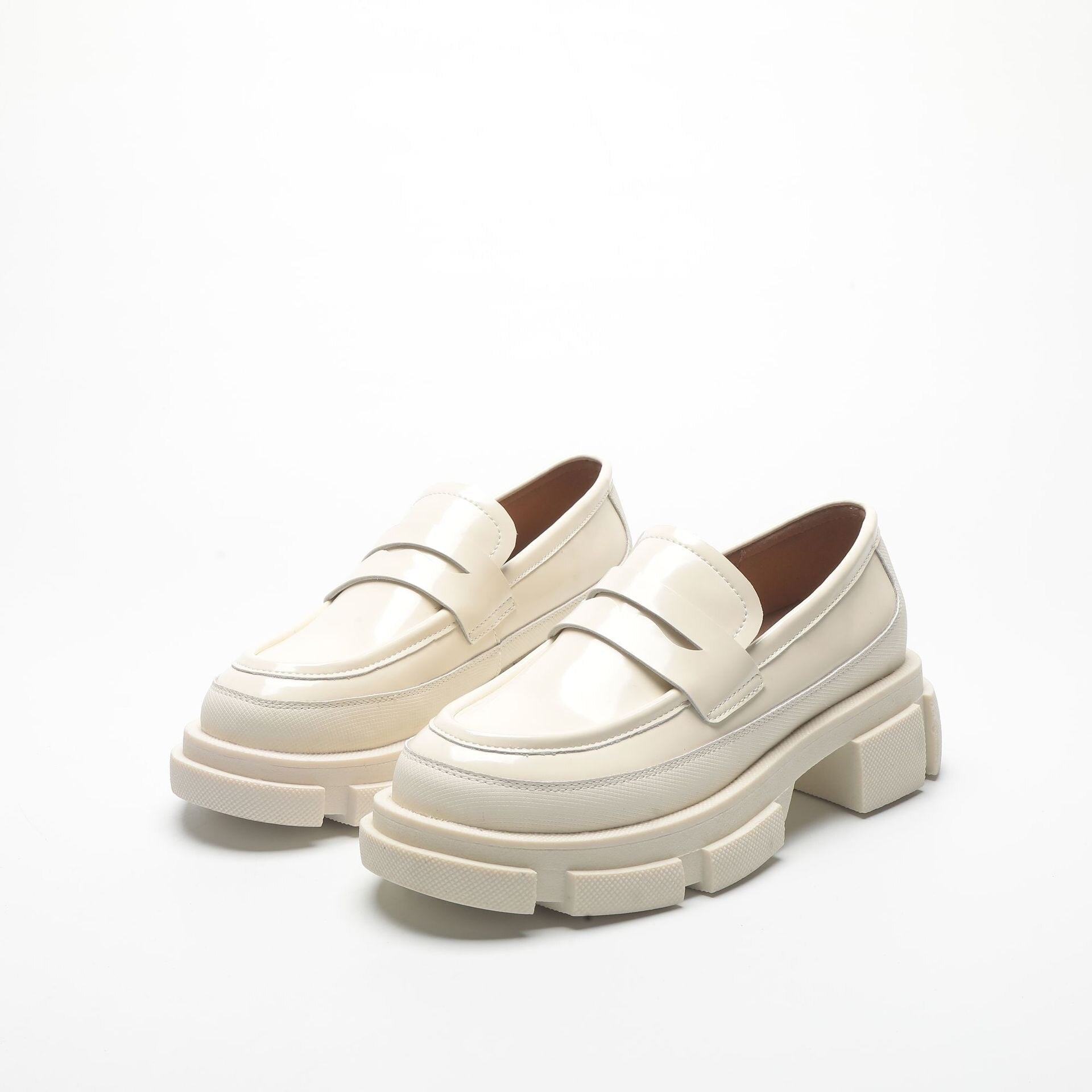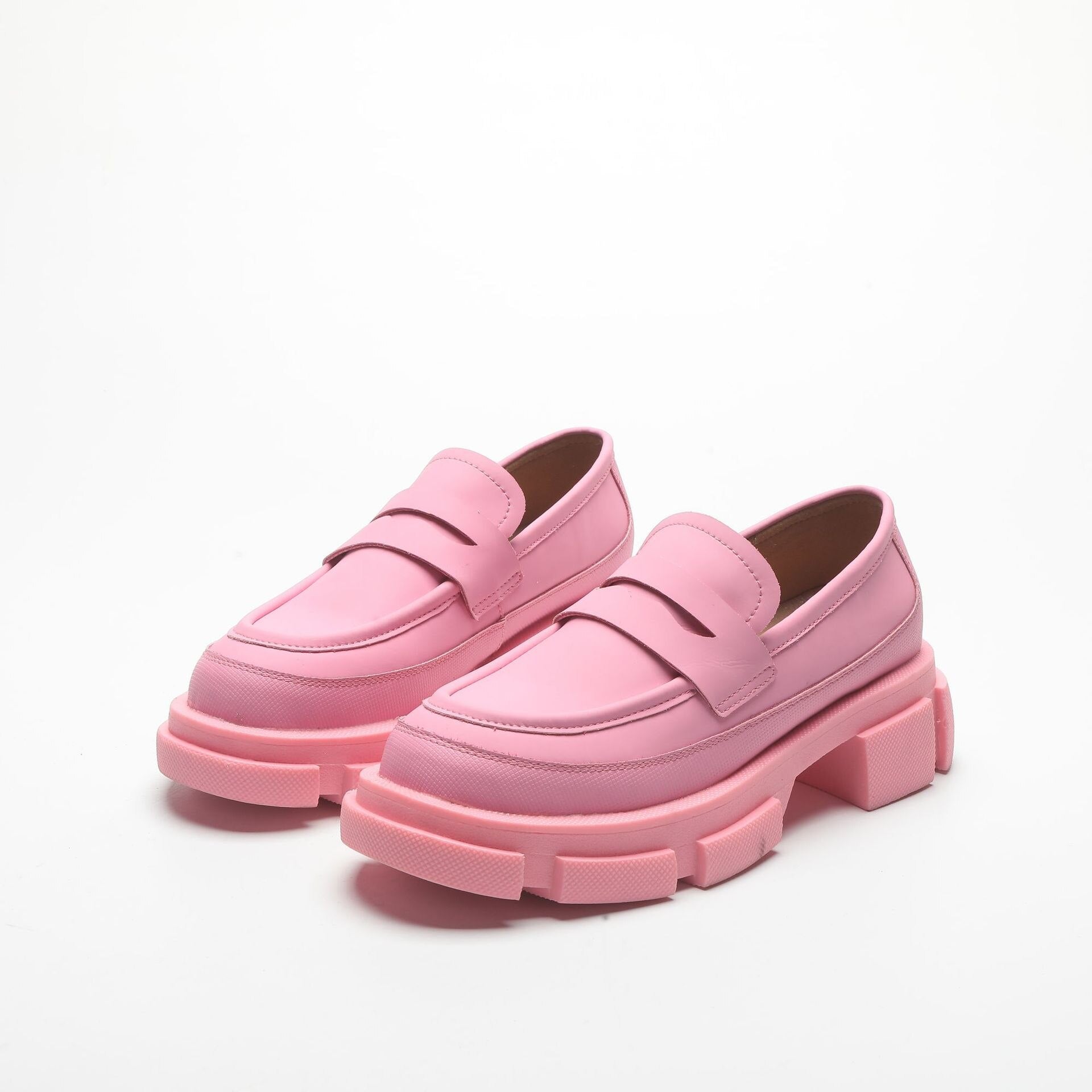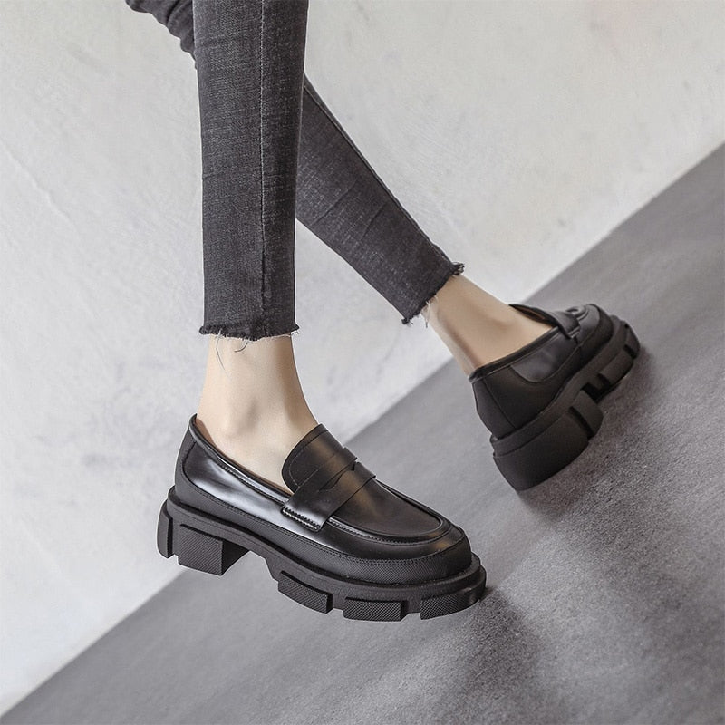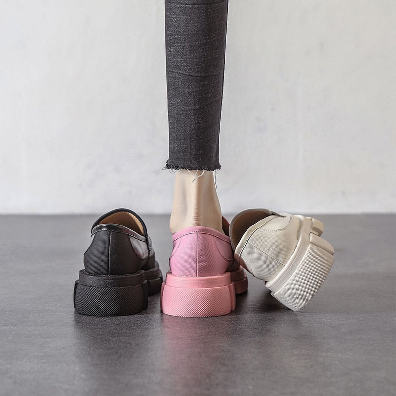 Retro Fashion Loafers Shoes For Women 2022 Spring New Designed British Style Cowhide Solid Color Platform Thicken Heel Shoes