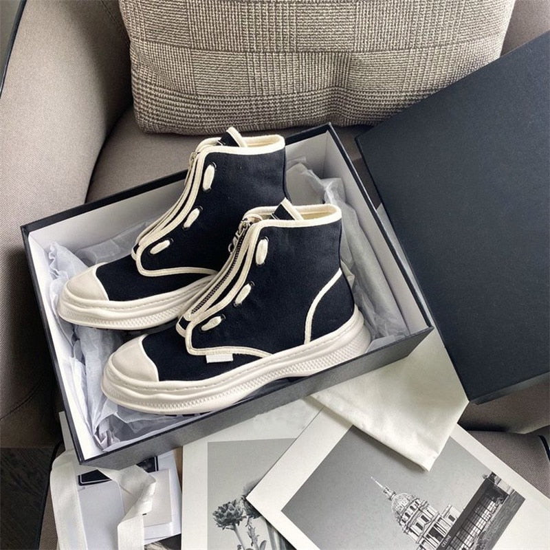Retro Ladies Canvas Shoes Zapatillas Mujer Casual Flat Platform Shoes Mixed Colors Sneakers Women Round Toe Cozy Female Shoes