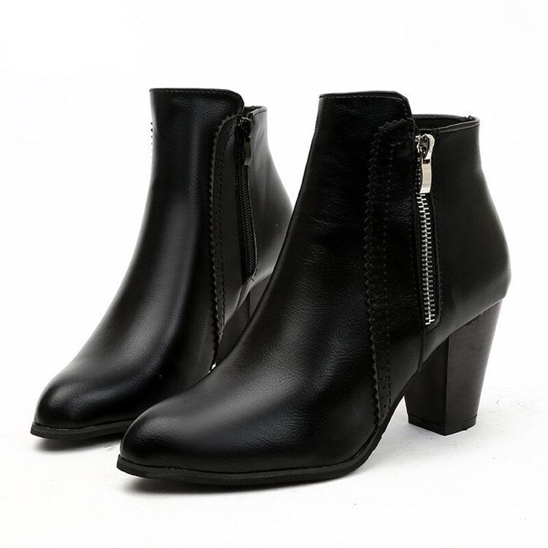 Return Women Ankle Boots Fashion PU leather Boots High heel 8cm Ladies shoes Side Zipper Short Boots for Women Shoes Drop ship