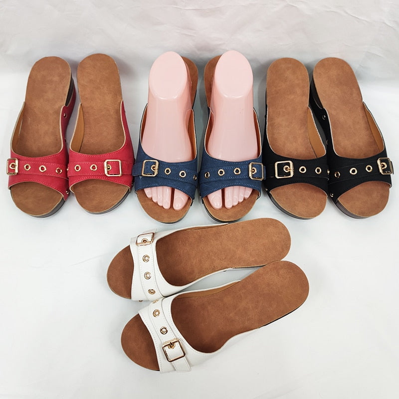Rimocy 2022 New Rivet Platform Slippers Women Summer Fashion Buckle Wedges Slides Woman Plus Size Thick Sole Beach Shoes Sandals