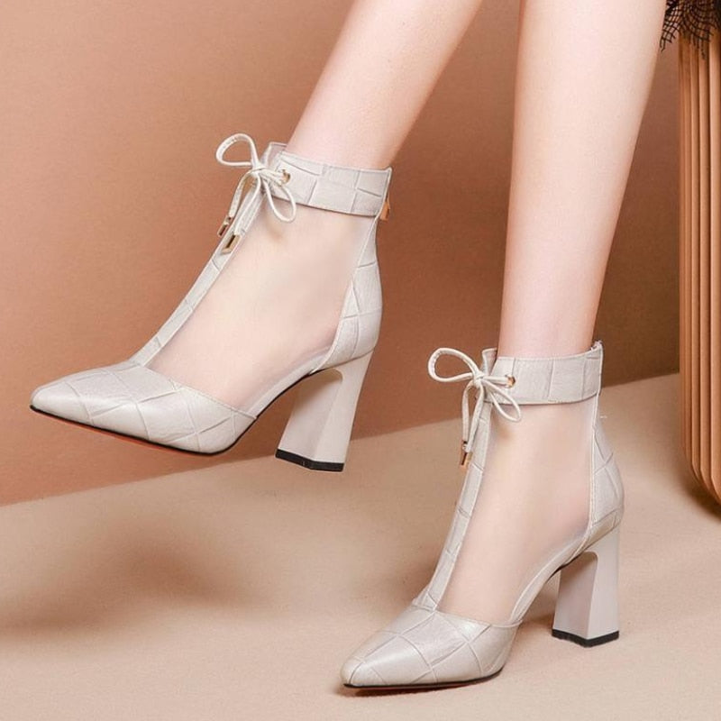 Sandals Boots Women Thick Heel with Mesh Short Boots 2020 New Spring Pointed toes Peep toes Boots High Heeled Sandals Shoes