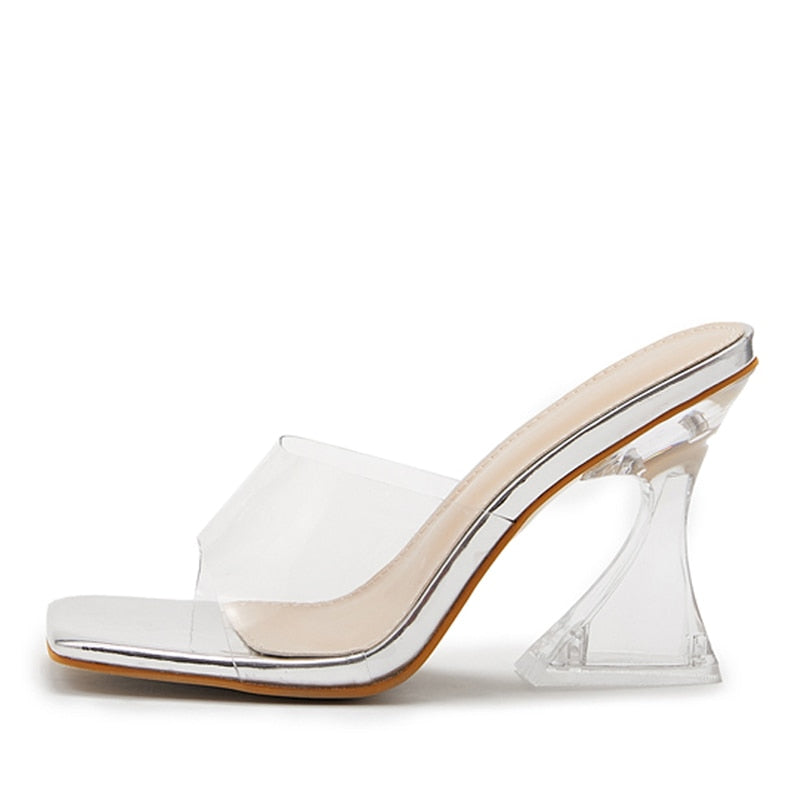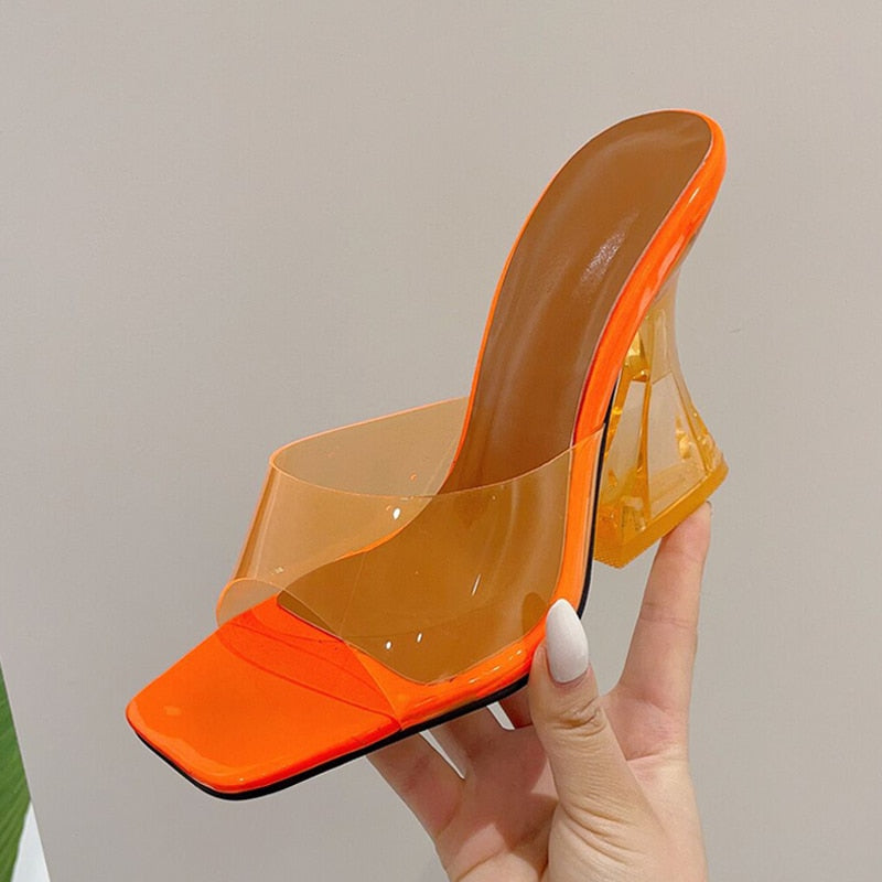 Sexy Leopard Grain PVC Transparent Slippers Women Slides Mules Gladiator Jelly Sandals Summer Open Toe Clear High Heels Shoes