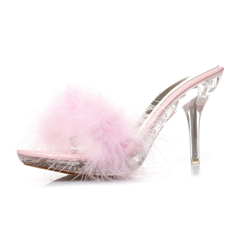 Sexy Stiletto Heels Fur Slippers For Women 2022 Summer Fashion Platform Sandals Woman Transparent Pvc Ladies Mules Shoes