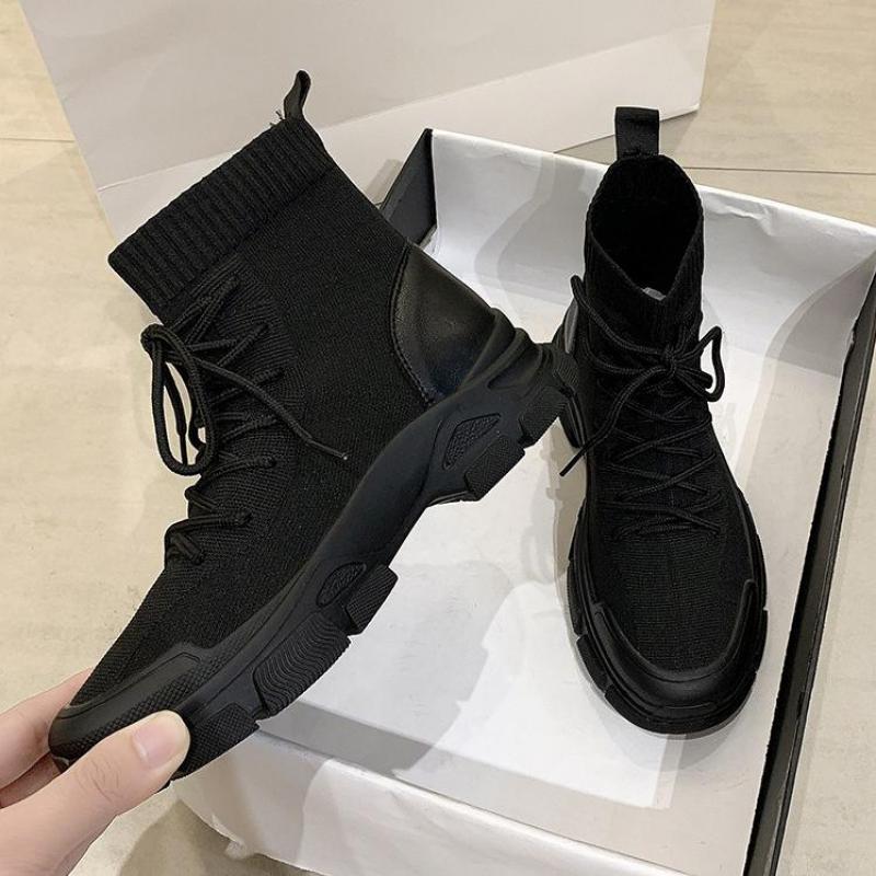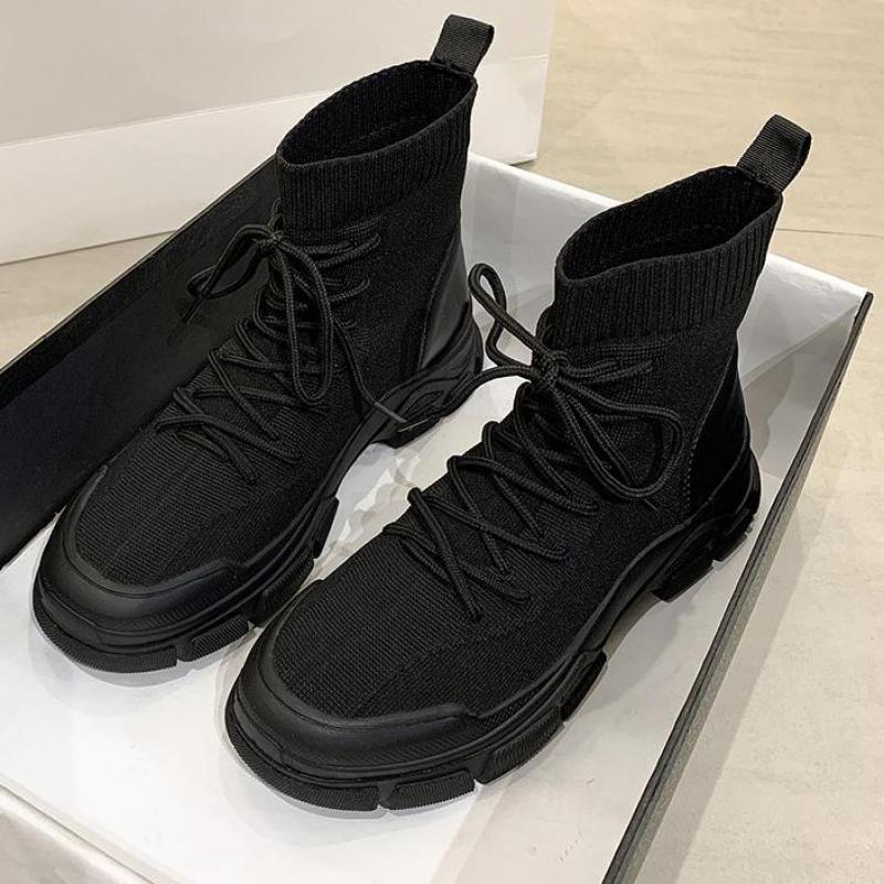 Shoes Woman 2022 Fashion Handsome Lace Up Breathable Black Platform Boots Non Slip Waterproof Soft Ytmtloy Botines De Mujer