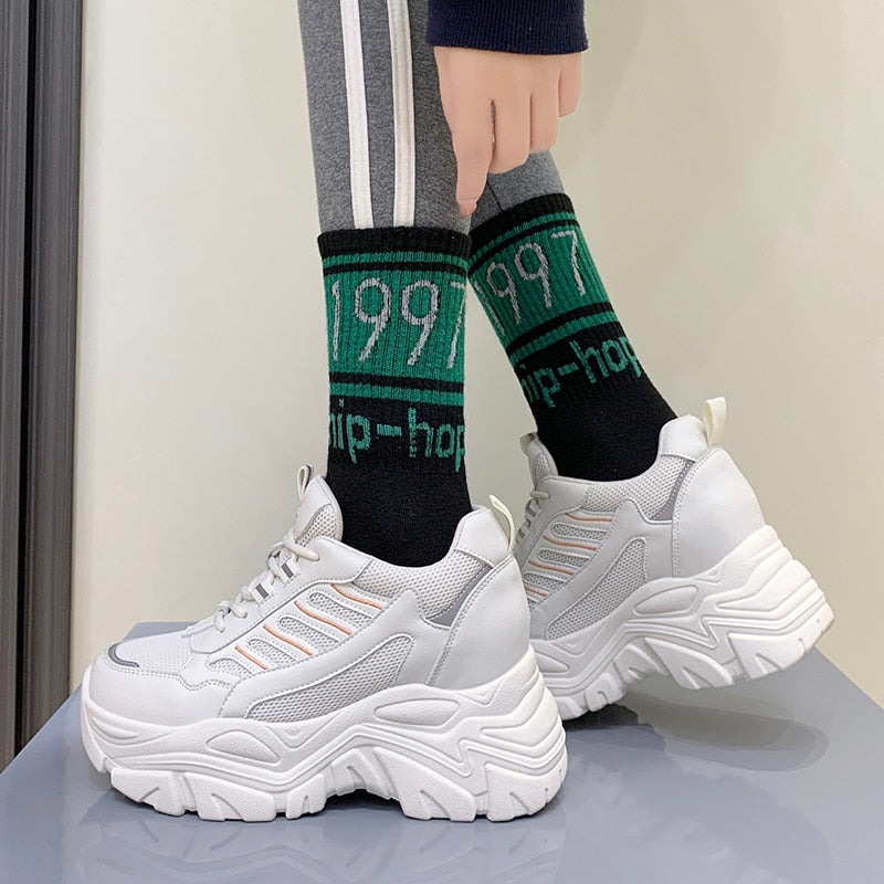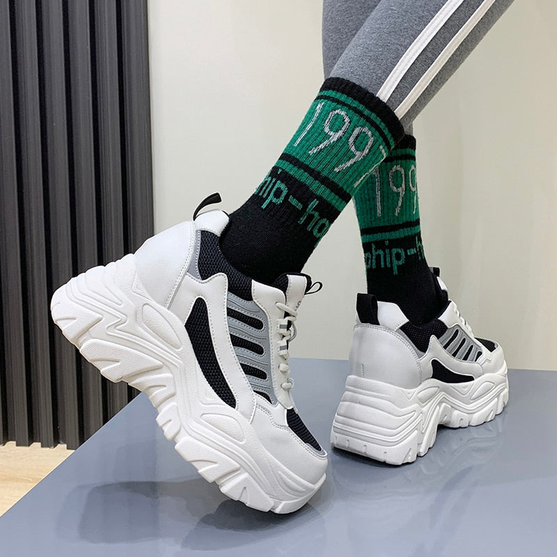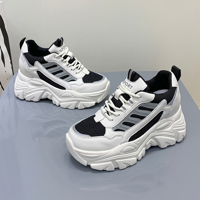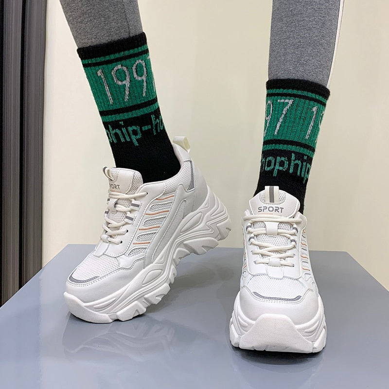 Spring Autumn Chunky Sneakers For Women 2022 Fashion Platform Vulcanized Shoes Woman Black Beige Thick Bottom Trainers